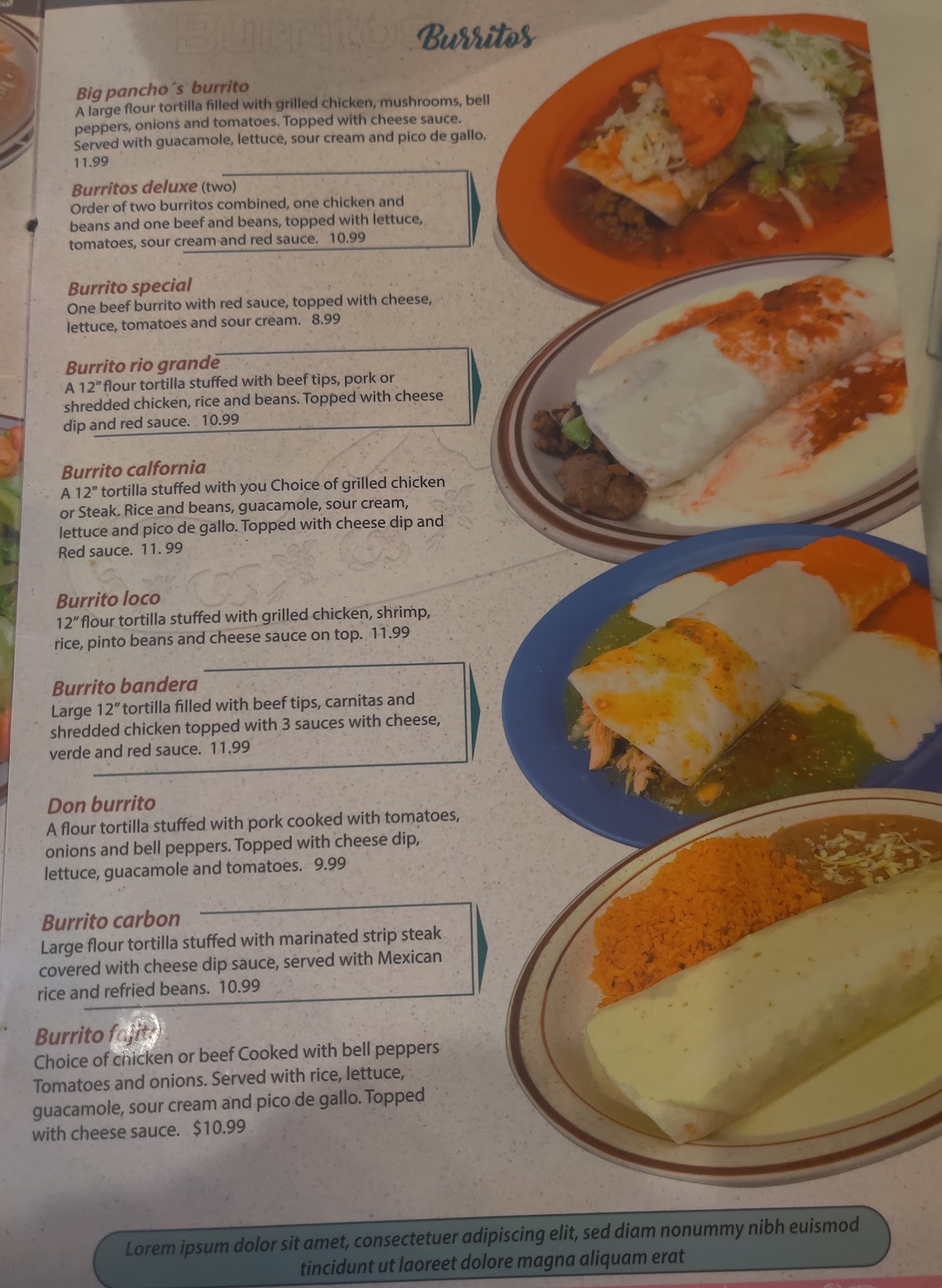 Very clean, including restroom. Chips/salsa..good. (Thick cut chips. Thicker, dark colored salsa). I ordered Polo Feliz .. looked amazing...waiter brought out, placed on table.. it was covered in cheese, veggies were on bottom and plentiful... thats great! Shrimp on top..delicious! Excited to cut into the chicken! Cut my 1st piece, put in my mouth..first taste the cheese and then I could taste... sour/vinegar? I stop chewing, trying to wrap my head around this unusual flavor..I wasn't sure what i was tasting exactly since it had tons of cheese on it (which I love) if i was actually tasting it right..if my tastebuds may be confused or something?..so i take a drink of water, clear my palette and go in for another bite at the other end of the piece of chicken... Sadly, it was another vinegar tasting bite!.. Sat there in disbelief for a few.. like, noo, my taste buds are betraying me... 3rd bite..yep, tasting vinegar! Now, any experience I've ever had in my 50+ yrs of tasting chicken.. if sour is the flavor..the chicken is bad chicken..this what I am thinking in my head..can't get past it..It's a BIG NO for me!!! (However, giving benefit of doubt, maybe they used vinegar in some way in this dish?? Cheese sauce? Marinated chicken in a vinegar brine of some sort???).. well, regardless I could not bring myself to eat the rest of this chicken dish. The presentation was fabulous, however the taste was not what i was expecting, not my flavor. 😞 (no, I haven't gotten sick..been about an hour ago I ate.. I did not say anything to the staff either.. as I said, maybe it's something in the way they prepare it..IDK.. just wasn't a good flavor for me. This is MY experience and MY review based on this 1x experience here. Other dishes are probably delicious! I love Mexican food..usually! I hope your experience is better and full of...