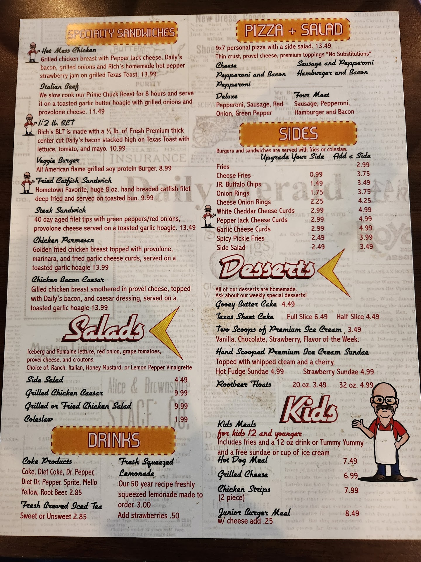 Read moreThis was the worst visit to Rich's I have ever had. We were seated right away. The waitress was extremely slow. We had a table of 4, and when she brought our drinks, she carried 3 of them up against her hoodie, which laid on the top of the cups. She took our order and it probably took 45 minutes or more to get our food. It was not busy at this time. My food was cold, I didn't say anything because it had already taken so long. We were missing some of the food. We told her, she said oh sorry, brought drink refills and we never seen her again. We were there about 2 hours. We wanted dessert. I finally had to ask another waitress to get ours so we could go. When she came to the table to bring the tickets she just said I didn't charge you for the fries, that was the missing food. She quickly dropped the tickets and walked off. She was young and probably new but it was not busy enough for that...