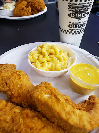 Read moreStraight-forward, no fuss chicken shop, with Great food, and a comfortable, relaxed setting. Set in a re-purposed bank, this classic, diner style establishment offers an open and spacious seating area, easy to move around even with the fullest of crowds. And even utilizes the Vault door as a passageway to a coin arcade, with video games, claw machines, and coin vending with kid friendly and favorite trinkets and treats. A diner/ice cream shop style room length dining counter. A young , energetic staff, that seems eager to please, confident, and ever so patient as you decide which entree and side to choose from the simple, easy to read menu board, or the numbered, customizable combo meals. Whether it's a burger, an appetizer, fried chicken meal, or something from the seafood selection, there's bound to be a new favorite for everyone with this menu of Classic American Fare . Last but not least, the deserts really steal the show. With both Vanilla and Chocolate soft serve. The flavor-burst system on the soft serve machine gives the welcome inclusion of several classic, to tropical flavors to compliment your confections. Available in cones, or dishes, even a novelty ball cap dish, in sizes from small to "Gargantuan" ( yes, it's actually on the menu) this is destined to be a local favorite. Shakes and concretes are on the menu , with a variety of add-ins, as well as other tasty treats. Although, on some, the sizes are limited. My only concern, in this pay, then sit restaurant, is the time it takes to order. The format lends itself to a small staff, this can cause some congestion with the incoming traffic as patrons select from their menu, specials, and combo board. This should improve over time, with regulars knowing and choosing their personal faves from memory. All in all, Snowensville Chicken and Burgers is a welcome addition to the area, and will be a personal go to. Hopefully for a long...