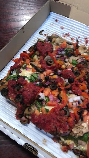 Okay... I have mixed feelings about the pizza and bread sticks here. Let me start with the pizza. Tree Hugger Veggie Pizza: This pizza was so overly loaded with toppings that they were falling off the pizza as soon as each slice was picked up. It was to the point that there were enough veggies left in the plate/box it could make a small salad if gathered together in a bowl. I was not too happy about that because it made for a sloppy pizza experience. The dough on the other hand, was unlike any other I have had before. It was fluffy and light. It was delicious, but when it came to the crust, it was missing that Detroit style "crunch". The sauce and cheese were well proportioned to the pizza. Bread Sticks: The bread sticks were top notch. I loved every bite. The whole time, I was thinking to myself, it would be amazing if these were stuffed with fresh mozzarella cheese (essentially to turn it into a Basco stick)! I would definitely come back for that because very few pizza places offer that. This pizza restaurant already has the perfect breadstick; it would be awesome if they introduced their own version of the Basco stick.
