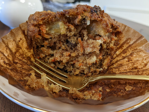 Everything was so delicious!! The pomegranate tea had the perfect blend of sweet and tart. The hot chocolate bomb was the best hot chocolate I've ever had, so creamy and had little hints of peppermint, like Christmas in a cup! Lastly we tried the morning glory muffins - fresh shredded carrots, pineapple and raisins, so moist!! Perfect spot to sit and have a treat or to get baked goods for the holidays. We ordered some muffins and scones for our Christmas brunch, can't wait to come back and try...