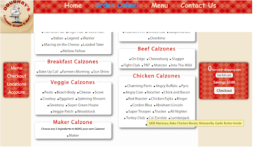 Ordered two calzones, one with added bacon, ranch, spinach, and I changed the cheese (it was the only way on their website I saw to get the ranch IN THE SANDWICH, since there appeared to be no option to do so), the other with just added spinach. No problems there, it'll all show up on the receipt, so it should be easy to make--I worked for years at an actual restaurant which made and delivered pizzas, I know the drill with online orders.