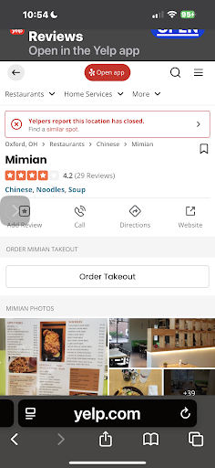 Ā Ā Ā Read moreI donāt know what has been going on lately but I cannot order delivery. I get an error saying āCannot reach Menusfi POS.ā I try to call them and each time I get an automated message saying āThis mailbox isnāt accepting messages as the mailbox hasnāt been set up yet.ā DoorDash and other delivery services also donāt go through I know they arenāt closed each time I try to order so Iām assuming thereās something wrong with their WiFi or phone line thatās causing this. I often canāt get there in person so I use their delivery service to get it delivered to my work. If a worker at MImian, manager, or owner can see this and investigate and solve the problem so I can have my favorite restaurant again that would be much appreciated! There isnāt another way to reach you besides phone and thatās...