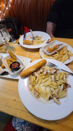 Visited twice within a couple of days. Applebee's is a safe go-to place. Food is reliably good. Unfortunately, our first visit was a 5/5 visit (thank you server Jen!) and our visit last night was a -5/5. Our server was so interested in hanging out chatting with her friend eating alone at a corner table than checking on our food. We ordered an appetizer that took 40 minutes to arrive. I am pretty sure she forgot to put in our order. Whatever happened, the sampler platter arrived lukewarm. Mmm, chewy mozz sticks, gummy boneless wings, and we didn't get the dip sauce we asked for. Entrées eventually show up. I am not sure what is going on with the potato situation at this Applebee's. I was surprised by the very small fry portion but figured it was a one-off. The fry situation is dire. I personally am not a huge fry fan so no big. But my husband loves his fries and paid the 1.99 upcharge and got 9 waffle fries. I ordered the sweet and spicy chicken sandwich, unfortunately I was so stressed by this time I couldn't eat and instead brought it home. I ate the chicken portion later and it was ok. My husband ordered the double burger and received burned, dried out, gray pucks with shredded lettuce stuffed in the bottom to hide the concavity. Black char and burned cheese haloed the edges. It was disgusting but not wanting to risk kitchen revenge by sending it back he drenched it in ketchup and choked it down. Our server finally returns (food was delivered by others - one who commented that the order was on the wrong table) and asks how everything is. My husband said, "Well, to be honest horrible, this was the worst burger I have ever eaten." The manager was sent over and we explained the food situation (didn't complain about the poor service). My husband had ordered the same meal in our first visit and enjoyed it so much he ordered it this time. The manager's response "different cook." He comped the burger (not the waffle fries) and we left. Our business doesn't mean much but we probably won't be back...