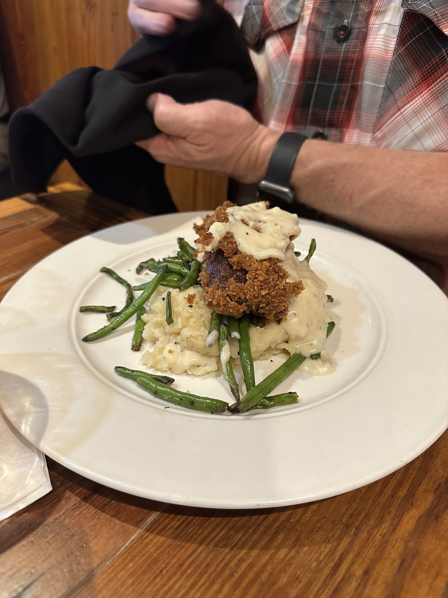 The brisket shepherd's pie stands out as particularly noteworthy, with its rich flavors and hearty ingredients. However, there's room for improvement, as the peas and brisket were overcooked, and the potential elevation of the dish with smoked brisket was a missed opportunity. On a positive note, the mashed potatoes and shiitake mushrooms exceeded expectations, offering depth and texture that were above average. The fried spinach was also a standout, providing a unique taste and texture that was enjoyable on its own, though its pairing with the shepherd’s pie might not have been the perfect match.
