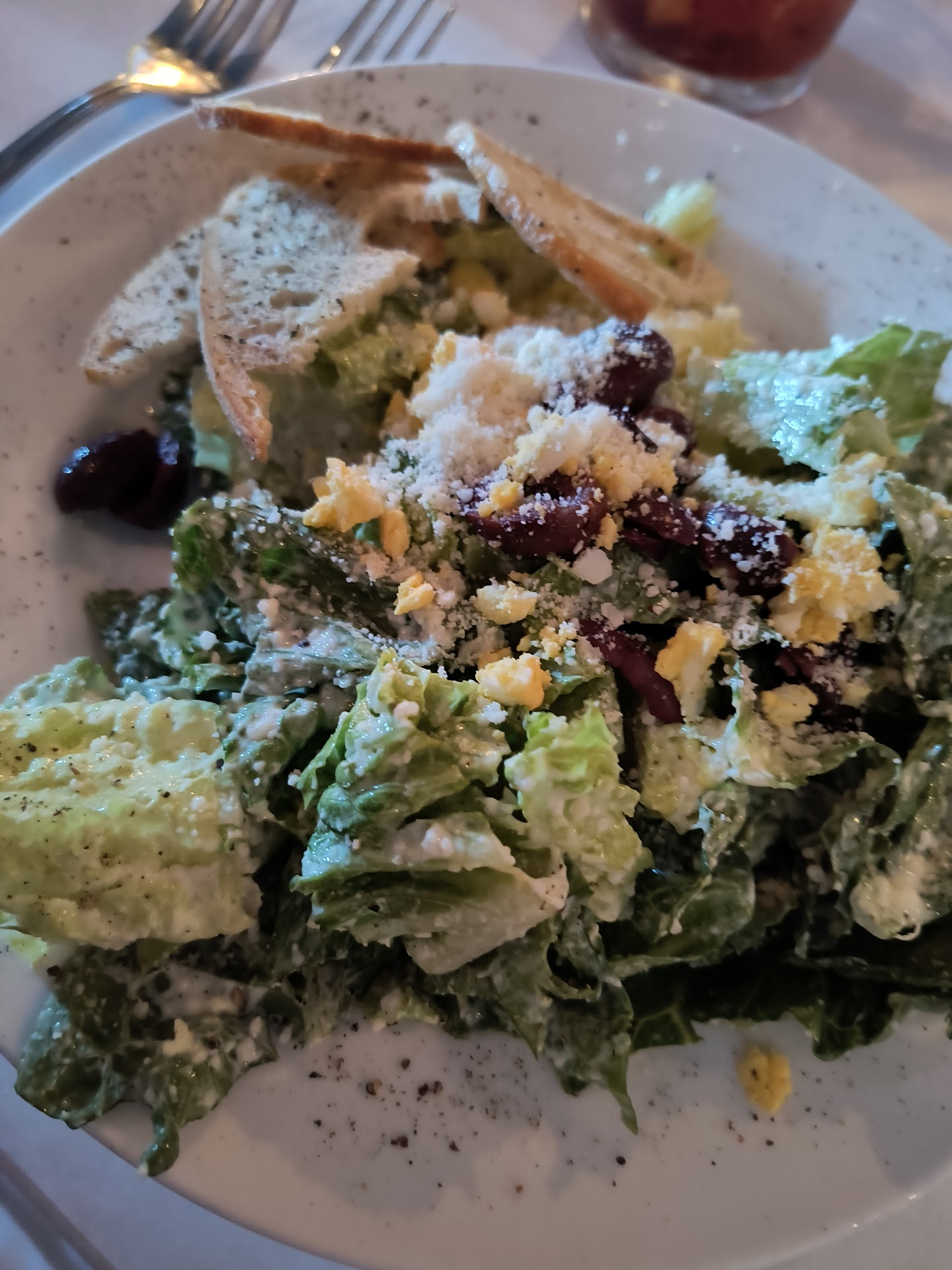 We opted to forgo starters due to the limited selection, instead diving straight into Caesar salads with a twist, featuring kalamata olives and hard-boiled egg. While not your traditional Caesar, they were a delightful departure from the norm. Entrees included Wasabi-crusted salmon, Char Siu pork belly, pan-roasted duck breast, and a grilled flatiron steak. Each dish showcased impeccable flavors, with highlights being the perfectly cooked duck, salmon, and rare flat iron steak. Though the pork belly leaned slightly towards being overdone, the accompanying scallion rice grits and sesame infusion added a delightful Korean barbecue flair. I don’t know if this is what the chef intended, but the flavor was outstanding.