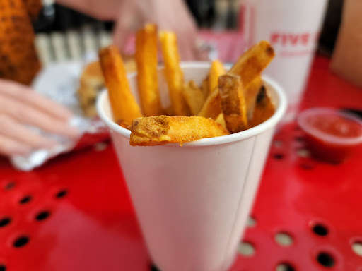Read more🍔 Burgers are always good at Five Guys. The shop here was decently clean and the fries good as always. The cash register server seemed uncomfortable with her role in taking food orders and dealing with customers. Maybe it was her first day? Maybe she didn't know she was supposed to be welcoming? But the other people working in the shop were warm and helpful - hard having the front person not treat you so good tho.