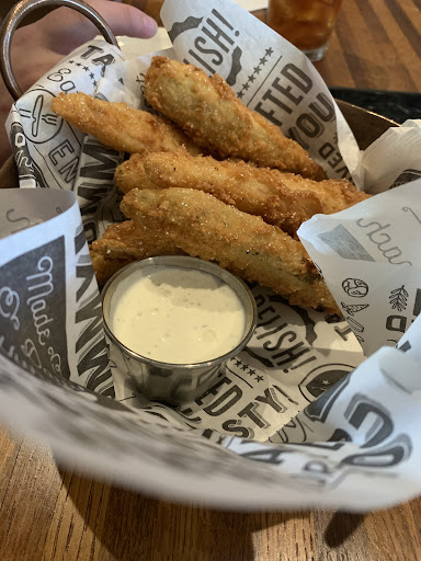 I gave it three stars as the food we ordered tasted okay and was a little overpriced. We ordered fried pickles as an appetizer - they were sliced pretty thin and were sitting in a lot of grease, therefore, we could only eat the ones on top. The entree I ordered was cooked completely different from how I've ever received the dish from anywhere else. I ordered the chicken picata. If the menu had a description of the entree I would have either known up front what to expect or ordered another item. For anyone wondering, the menu literally just said "Chicken Picata" followed by the price. My fiance ordered the "Shrimp dinner" - the only description provided was "fried or grilled" followed by the price. He said the coating on the fried shrimp was a similar texture to that on the fried pickles - soft and with a lot of grease.