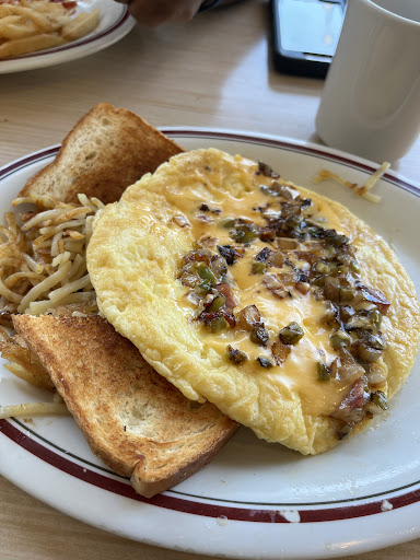 When I say these things about this place you can believe it or you cannot believe it this was our experience. We walked in and we didn’t know if we were supposed to Seat ourselves or stay in there and so we literally stood there for a few minutes with nobody say anything to us before we decided to just seat ourselves. I don’t think I’ve ever felt so ignored by another human being in my life. Cats pay more attention to you than these people did! we sit down we have no drinks and nobody offers to get us any drinks for at least five minutes. Finally we get a coffee and tea. We order our food and I am very specific about the onions bring sautéed because they hurt my stomach. They are not sautéed when I get my food. I send it back. They sautée it with significantly less vegetables than the first time. My husband almost had to slurp his drink to get a refill. Tammie our waitress did offer to get me some water and a second cup of coffee. Generaally at this point in a meal we are on a third cup. She also brought us extra napkins. We are completely done eating and have stacked our plates. She tossed onto the table with nary a word to us. The table next to us was cleared but NEVER wiped down even after the girl swept the floor underneath. We decided to just sit there until our ticket was brought. She thumped the paper ticket onto the table and walked away again with no words. Overall this actually deserves negative stars. I wish I had cash that I could have put on the table and walked out...