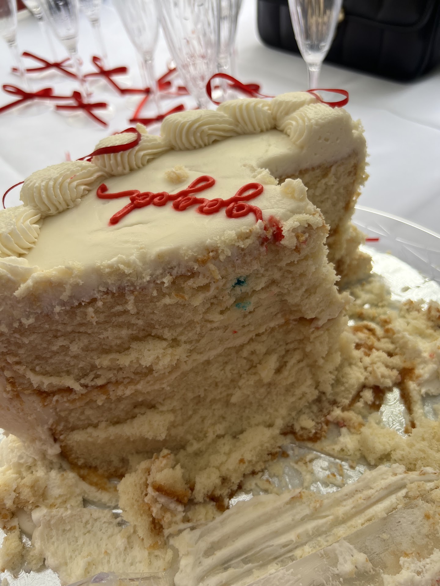 I had contacted just cake it to make an engagement cake for an engagement party. We were having in the Grove with my whole entire family. I had sent pictures from Pinterest showing exactly what I wanted. upon picking up the cake, The writing was in a completely different font than what was showcased on the pictures I had sent. We were charged 15 extra dollars for the ribbon, that did not all match the Picture either. The manager was nice enough to change the font on the top of the cake to what was originally requested when the order was placed. but upon fixing it, the white frosting on the cake was still messed up, even though the writing had been fixed. The bows were fixed and we left with the cake upset that we did not get what we received, but we’re happy that management accommodated to what we had originally requested, the cake looked beautiful and was everything that I wanted. When we get to the next day, my entire family is there celebrating our Engagement. We take our pictures, toast, and go to cut into the cake and it is a completely different flavor than what I had requested. On the original request, I had asked for red velvet cake with cream cheese frosting. I was told that cream cheese frosting would not hold up the piping I requested and they recommended switching to buttercream. I think they would know best So the final order was supposed to be red velvet cake with buttercream frosting, vintage piping, Ribbons and cursive writing on top. not only was the flavor of the cake completely wrong, but it had random food coloring in different spots of the cake almost like sprinkles or food dye was accidentally put into the batter in the process of baking the cake. How mortifying is it to cut into your engagement cake, only to find out it is completely different than what you requested but it’s also… Confetti cake. What an absolute nightmare you only get engaged once and this experience is something I will never forget. I was absolutely mortified that I was cutting into confetti cake at my engagement party after telling everyone, it was supposed to be red velvet. How embarrassing from wrong fonts and ribbons to wrong cake flavor I will NEVER order from this place again. The cake was $150 which is already expensive so to mess it up this bad I was furious. My mother called and demanded a full refund on the cake which they were happy to give on top of a $50 gift card. I Don’t even want the $50 gift card because I never will order from this place ever again. Your entire business model is to create custom cakes and desserts for celebrations and special events. I will never have another engagement ever again and will never forget how upset I was. How was I supposed to know the cake was going to be the wrong flavor before cutting into it absolutely ridiculous ever order from this place ever!!!!!!! (see photos below: random food coloring and horrible icing...