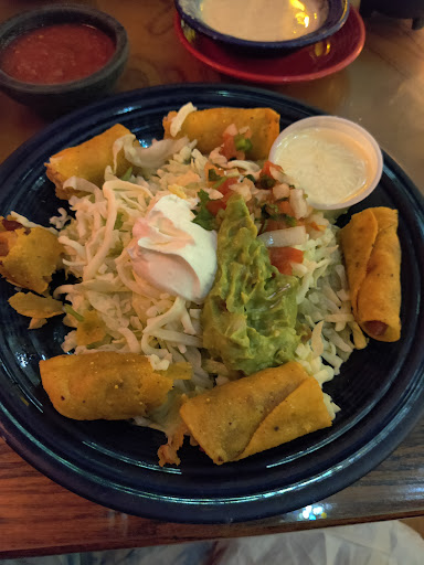 I got the chicken taquito appetizer since I wasn't very hungry. Came with a ton of shredded cheese, pico, and cheese dip. The blob of guacamole (see photo, which I took after I started eating, oops) was an extra $2.50. Too expensive for that add-on, but not a problem enough to change my rating. Corn tortillas were cooked perfectly; great crunch, and chicken was juicy and flavorful.