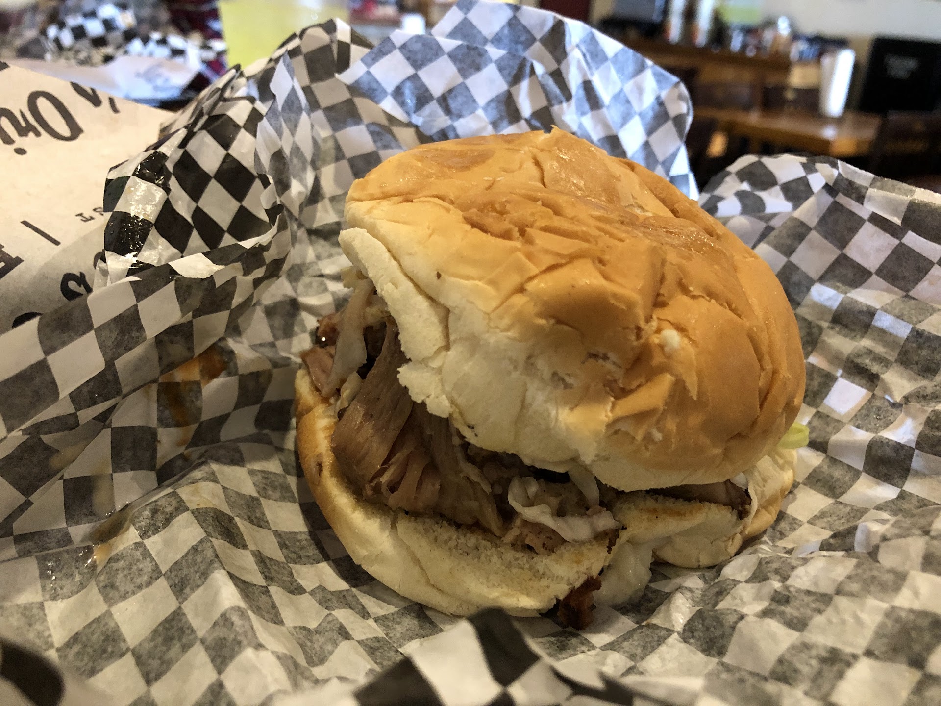 Worst BBQ I've had in the South. My wife's chicken and my son's and my pulled pork was very dry.