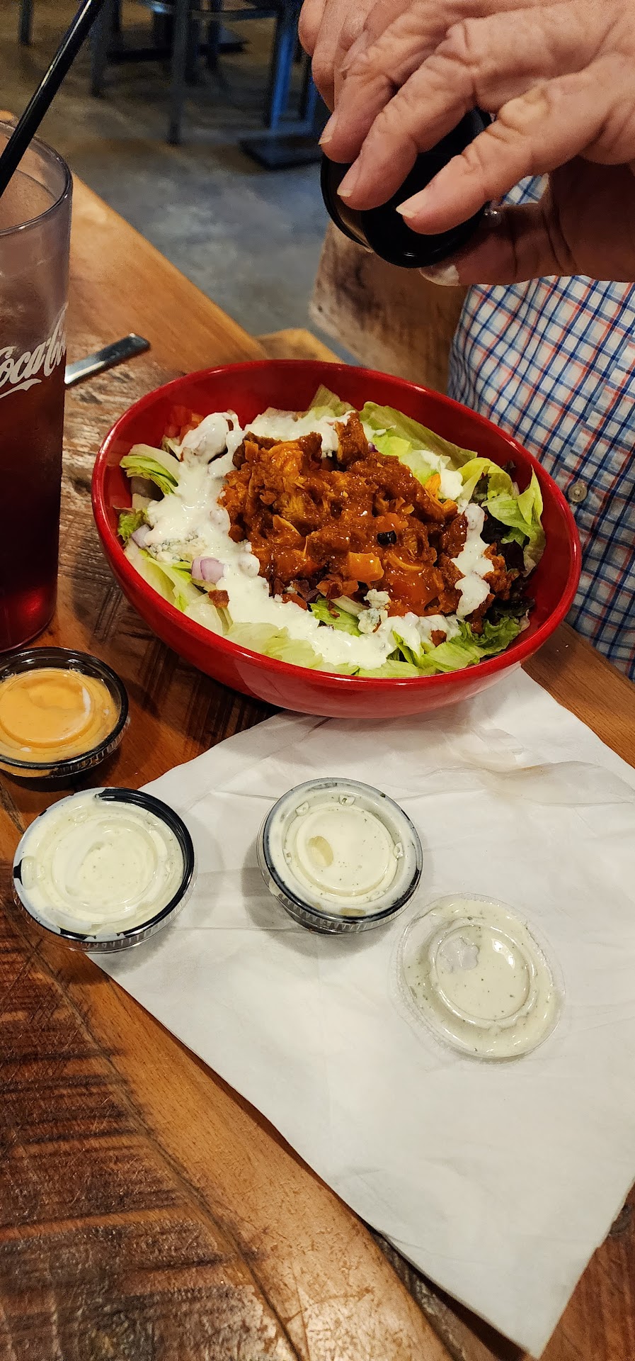 Read moreThis is not my first bad experience with Oxford Mugshot's "to go" service. Every time I do a to go order I walk in to front desk to pick up, and am greeted by two to three Mugshots employees standing around. When I mention a to go order they merely say ok, and stand around some more until another employee rushes up to answer the phone. This employee is clearly stressed and busy. By the time that employee is off the phone I have spent several minutes standing around looking at the other employees who are doing nothing. My order has never been bagged and ready to go by the time I get to Mugshots, and when I open my boxes the food is nearly always smooshed all together. This time my to go box was not closed properly and by the time I got to the car I realized half of the food had fallen out (this was the Mahi plate with shrimp and rice) so not so great to have shrimp and rice at the bottom of the bag. Also, the food was cold.