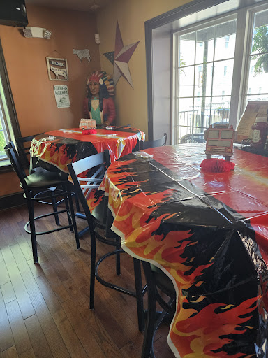 Just to round out a really horrible lunch, they had 1 TV playing sports, another playing fix your car and I believe other TV's. One can't hear the TV's because the volumn is off or too low to hear. What you will hear is twangy, bangy, nasal voice C&W noise... They have it just below OSHA damage your hearing levels! Just loud enough so ya can't hear the waitress, ya can't hear others at your table, ya can't hear much of anything except twang, twang, bang, bang! To prove this, I asked the waitress for some cardboard to put under the table leg so I could stop our rocking table. She came back with 1 napkin??? I want cardboard, WATCH, I rocked the table and yelled "CARDBOARD"... She came back with 2 spiral bound pocket note pads 1/4" thick. We put 1 under the leg and it helped. At least our drinks would not have white caps in them! Nothin but the best for ole Gomer and his cuz Goofus!