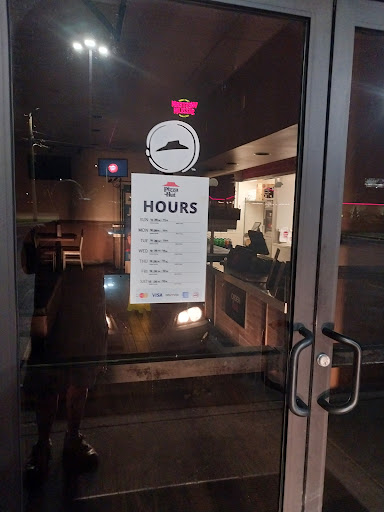 Read moreThis was the most unique experience I've ever had at a Restaurant. We arrived, parked at the front door. Hours were posted on Doors saying they were open. (It's 5:30 pm on a Saturday night.) The Door's were locked. Chair's were up on the Table's. We saw one male employee going through the Cash Register. He wouldn't acknowledge us. Then we saw another male in street clothes come from the bathroom area and walked behind the front counter, never said anything to us. Then another female employee clock's out on another register with her ID or she might have been paying for her own meal because she sat down in a booth in the window facing us while she ate! Numerous people came to the door to eat in, but nobody placed a sign up saying they were closed. We decided to go to their Drive-thru to place a take out. I asked the employee if he was OK? He said yeah. I asked if we could place an order and he said wait a minute, let me go ask!!! (Seriously Folks!!!) He came back and said we could and so we did. After paying, he said go park around front & I'll bring it out when it's ready. During that supposedly 20 min. it was to make it ready, 45 min. passed while our Pizza's sat on the front counter with the Door's locked!!! We paid nearly $38.00 for this!!! While sitting there, friend's of the employee's came up to the locked entrance & the employee's unlocked the Door for them & let them inside to eat!!!! Oh my God!!! Pizza Hut what has happened to you???? After getting this new Building done, you have to open your Dinning Room to make money folks. It's not going to pay for itself. Great Pizza, but a headache to...