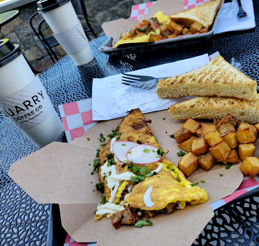 Read moreUnplanned stop was worth it! If you're constantly on the look out for a new, great coffee spot, then check out Quarry! I ordered a standard iced caramel latte, which is the standard I judge all coffee shops by, but as soon as I walked in, there was a problem. I saw the Specials board and immediately knew I was going to choose an item for my latte to wash down. I chose the Highland Ave chicken cutlet sandwich. The total: $22 and well worth it. The latte mixed well, creamy and not heavily sweetened. The sandwich was far bigger than expected! There was a decent amount of chicken and fresh ingredients. It's something I would have made for myself and I pride myself on my sandwich making skills! :D The dining area was a bit to cafeteria-like for me. I do prefer cozy/comfortable, but there is also a small patio with an impressive amount of seating. And two other amenities that I did not explore today, but could be game changers...there is alcohol and a drive thru. Perhaps one shouldn't pair the two, but they're available. I would absolutely recommend and have...