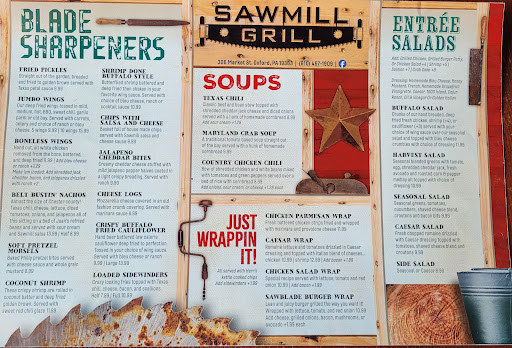 Read moreOn vacation we were out for a drive and found ourselves in Oxford, PA. Looking for a non-chain type place to eat we found the Sawmill Grill. The reviews looked good so we figured we'd give it a try. They had a good crowd for a Friday lunch but we were seated quickly in the upstairs section. A little too noisy for my wife. There was a loud group on one side and a very young child that couldn't get him mother's attention on the other side. Turning off her hearing aids resolved that issue. Service was quick and the food came out hot from the kitchen. I opted for the Bruhlwich. A Buffalo chicken breast between two waffles drizzled with syrup and powdered sugar. An interesting flavor combination that seemed to work. With each bite you could taste the waffle, syrup and hot sauce. My only issue was the dish was so heat hot that I had to let it sit to cool down a bit and the waffles got soggy with the syrup. It didn't effect the flavor at all and I ate every bite. It just made it a little messy cutting it. My wife had Grandma G's Homemade Chicken Salad Sandwich. Nice, solid chunks of chicken with good flavor. Both dishes came with their soon-to-be famous Sidewinder Fries. I'd venture to say that each side of fries was more potato than you'd get with a large baked potato. We ended up taking most of the fries home. If we ever find ourselves in Oxford again we know where to eat. There are other items on the menu that I...