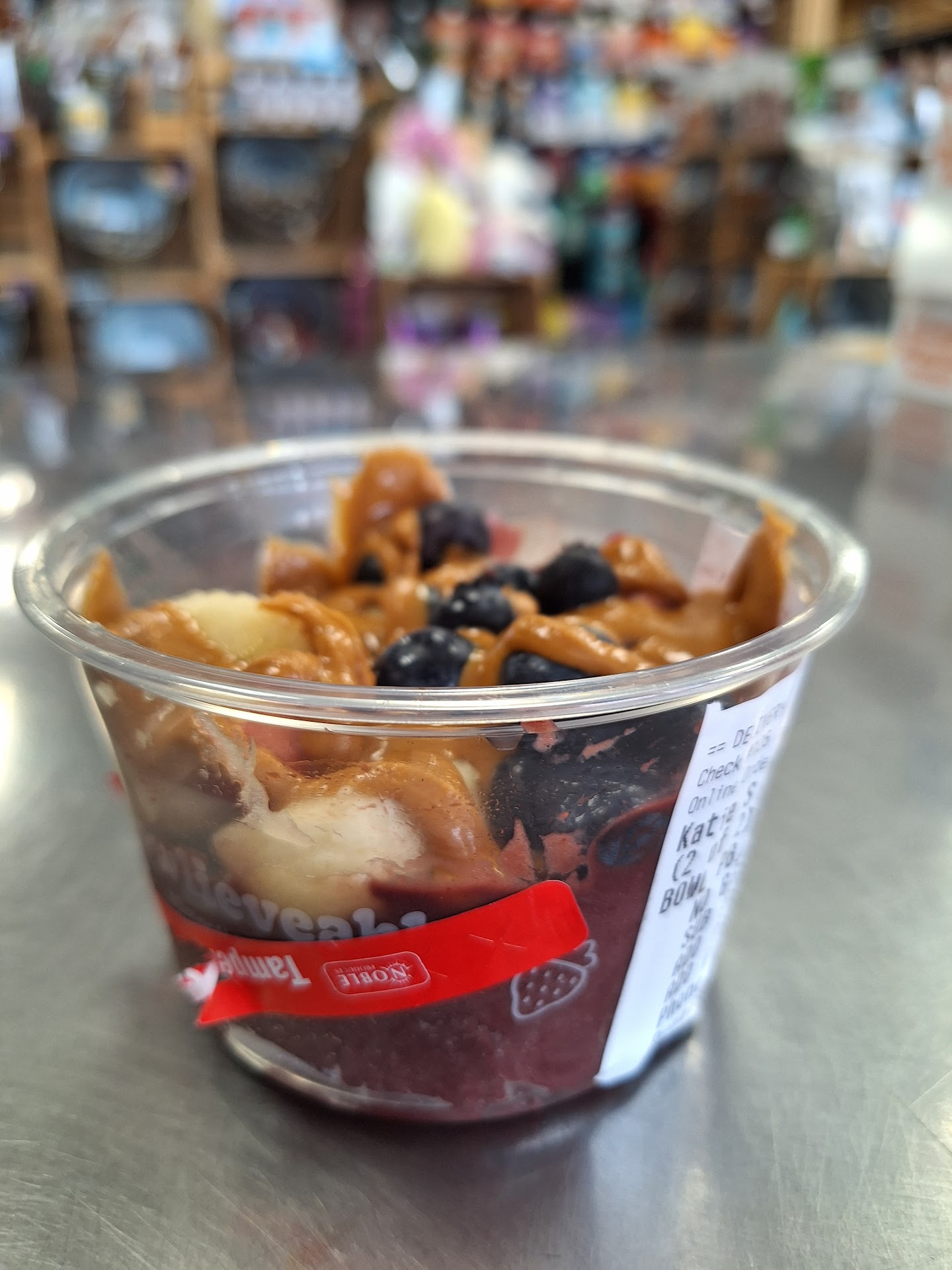 Read moreI'm a regular visitor to Smoothie King as I'm on the road a lot, and their smoothies are incredible. Tonight, after a long day, I ordered an Acai Bowl and a Smoothie through the app and went through the drive-through for pickup. Nobody else was in line, and I didn't have to wait long. The smoothie was excellent! If you need a recommendation, get the Peanut Power Plus Strawberry. It's amazing. The acai bowl, though...was a significant letdown. I really dislike blueberries—a lot. So, I modified my order on the app to remove blueberries and add extra bananas instead. I guess the person working went too fast and didn't see the edit, so I had blueberries in the bowl, and no, it's not the end of the world, but it sucked as I ate around them even after giving a few a try to see if I liked them. Nope. Smoothie King, you rarely let me down. Slow down and read the order. I need to have confidence in a mobile...