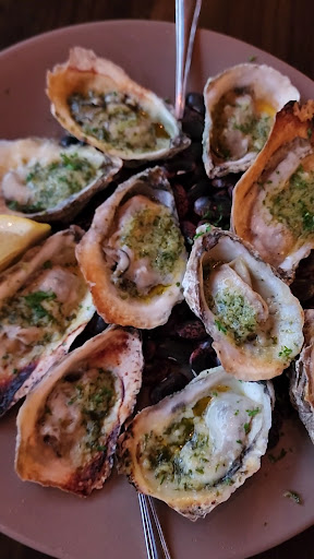Read moreWith it being spring break, it was not overly crowded at all. The atmosphere first off was quiet and welcoming. The hostess immediately greeted us and set us down with a smile on her face. Our waitress was very kind and described everything in great detail. We have never visited before and was informed greatly. The menu was simple but had great options to choose from. We ordered the grilled parmesan oysters, and they were perfectly grilled and well seasoned. I paired it with their house made sweet potato hot sauce. Delicious to say the least. My husband ordered the prime rib steak, and it came with rice and broccoli. My goodness, it was good. Medium rare just like we like it. I ended up getting the brazed short ribs and honey Dijon mustard Brussel sprouts, and a bed of house made potatos and gravy! I am telling you. It was so good, and the short ribs were extremely tender. That isn't something you'd want to miss out on. We will definitely be back and do it...