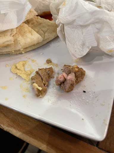 A few months back I got the worst food poisoning of my life from eating severely undercooked pork that made it into my Pork Soulvlaki salad. I noticed the meat was "chewy" and after eating only two bites, I took some and cut it up on my plate and it was basically raw. (picture attached)