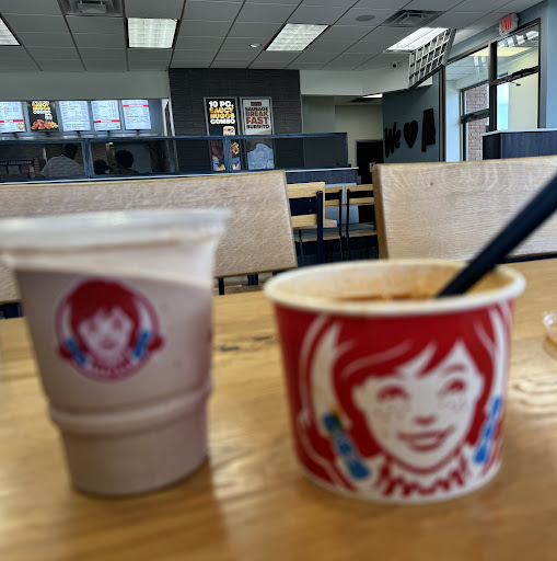 Read moreWe went for our evening sweet and to try the new strawberry frosty. When we arrived it seemed busy, not sure why but it seemed like they may have been trying to train a newbie (they were) and as we approached the order kiosk we were told their POS was down and it was cash only (which was fine), then we were asked politely to hold on for a minute (ok, that's fine cause they needed to catch up) but that minute turned into almost 5 minutes. Finally, they were ready to take our order as I began to rattle off our order I was told they were out of that item, so ok, I ordered something else and was met with the same response, so then I then tried to order a chocolate frosty, still same response, so ok, then I tried to order a vanilla frosty and again I was met with the same we're out response and was finally told they only had strawberry frosted. What? How bazaar. Well, since we did go there so my husband could try the new strawberry frosty we ordered one (I didn't order anything for above mentioned reasons). So on to the frosty. As much as we enjoy our evening sweet and we like the chocolate and vanilla frostiest this strawberry frosty was absolutely disgusting. My husband was never so disappointed. Not only was it not visually appetizing but he said it was warm and a strawberry milkshake from anywhere else would have been better. I'm not sure what was up with Wendy's that night but the succession of events that evening are sure the making for this review. In all fairness we will have to give them another try (but not the strawberry frosty) since we don't usually eat fast food. All in all, it's definitely a busy restaurant a little tricky to get to plus their really tall sign was not lit up but the staff are nice and friendly. I'm sure next time we'll get to try something tasty, if they have any to...
