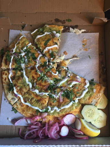 I placed my order over the phone, the order was ready and on time. I would like to say that it seems like these business are making food extra special for Trendi Eats. In the Trendi Eats video the pizza had so much cheese every time she bit into it, even as she took it apart you could tell there was a lot of cheese. I know this is marketing and promotion for business but it’s deceptive to the public who go expecting to get the same food that was promoted. The presentation gets people wanting to go and try it and it works because here I am writing a review of my first visit of this place. My pizza did not have even 50% of the cheese that I saw on that video, not once when biting into or pulling a slice of the pizza did I have a long string of cheese. It did have lots of birria though but for my taste the whole thing was just bland and disappointing. Staff was friendly. I would definitely not recommend it.