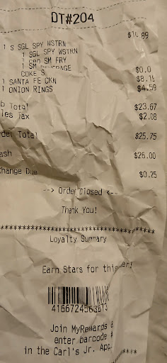 You know what I like about that fast food industry is that most of them are kids in high school are there preparing the way for their future and it's preparing them and you can see their struggles you know what's good is that to go there and you see these kids being honest and they're working hard and they're delivering so the place is clean very ain't so bad there's plenty of places to eat just right in that facility but you know it's just a nice atmosphere you going to Carl's jr. It's like IHOP in a in an old fart Frosty Freeze type of atmosphere in like a you know Dairy Queen and root beer you know float thing and that's what it reminds me of when I go into Carl's jr. Anyways I enjoy it I don't go there too much because you know how late I'll kill myself in anyways I enjoy it I don't go there too much because because if I eat their I'm not eating what's prepared for me at home anyways have a good visit at your...