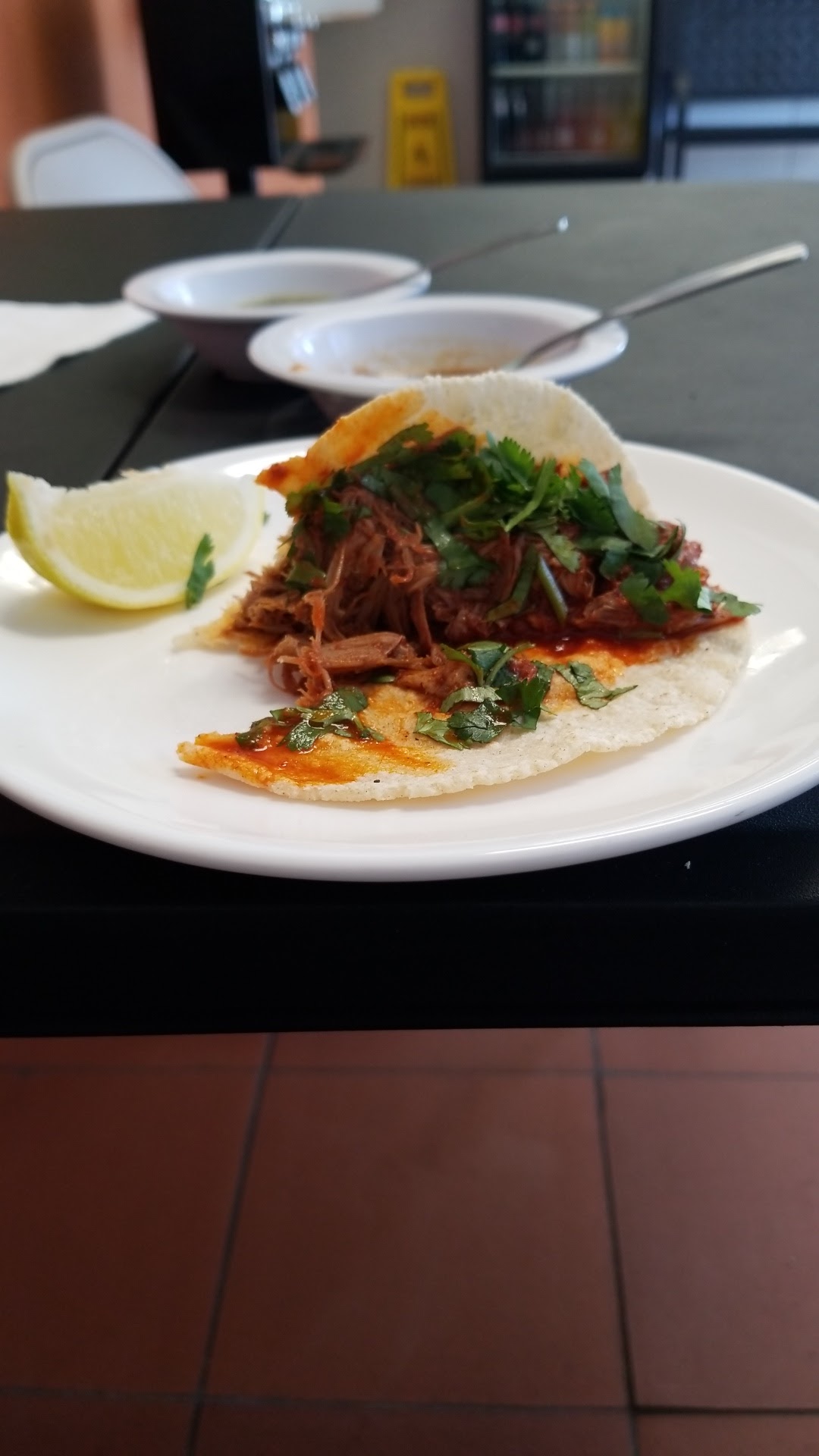 My husband and I were actually looking for a place to buy coffee. To our surprise this was not a panaderia but a restaurant. I had no idea what a "memela" was and ordered that. My husband ordered a carne asada burrito. We were both very happy with our selection. The season was perfect! This place seems to be a good spot for menudo. By the way corn tortillas are hand made. Oh ! What's a Memela ? It's a thick hand made tortilla with melted cheese and the sauce of your choice. Yes!!! An opened quesadilla! Between a quesadilla and a gordita ! I opted for the green salsa because it's their most mild salsa. But so delicious! ...