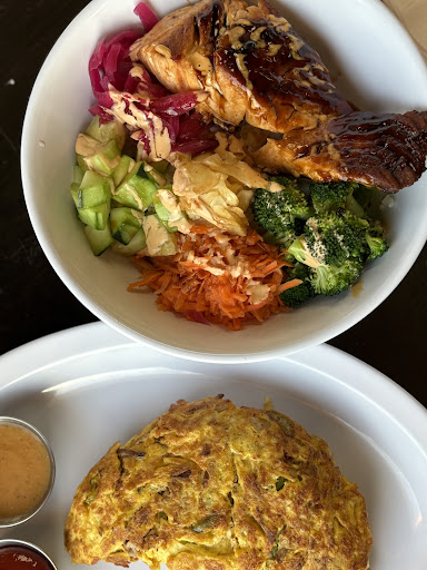 We got the cochinita omelette and teriyaki salmon bowl and both were perfect for dinner. The pork in the omelette was so tender and the spicy sauce that came with it was one of the best I’ve had (and actually spicy)! The portions were really big and the sauces and all the toppings with the bowl were so tasty.