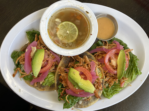 Got both the panuchos and french toast because I couldn't decide on just one, and I have no regrets! The soup that comes with the panuchos is amazingly tasty - there's vegetables and chicken in it, and the lime adds a great zip to it. The chicken in the panuchos is very flavorful and not dry at all. The habanero salsa that comes with it is also tasty, albeit super spicy for someone who isn't used to a lot of spice. The french toast was buttery, chewy, crisp on the edges, and lightly cinnamon-y. I intended to take leftovers of both home, but it was all so good I finished all of the panuchos and half of the french toast. I had to order more panuchos so I could enjoy them...