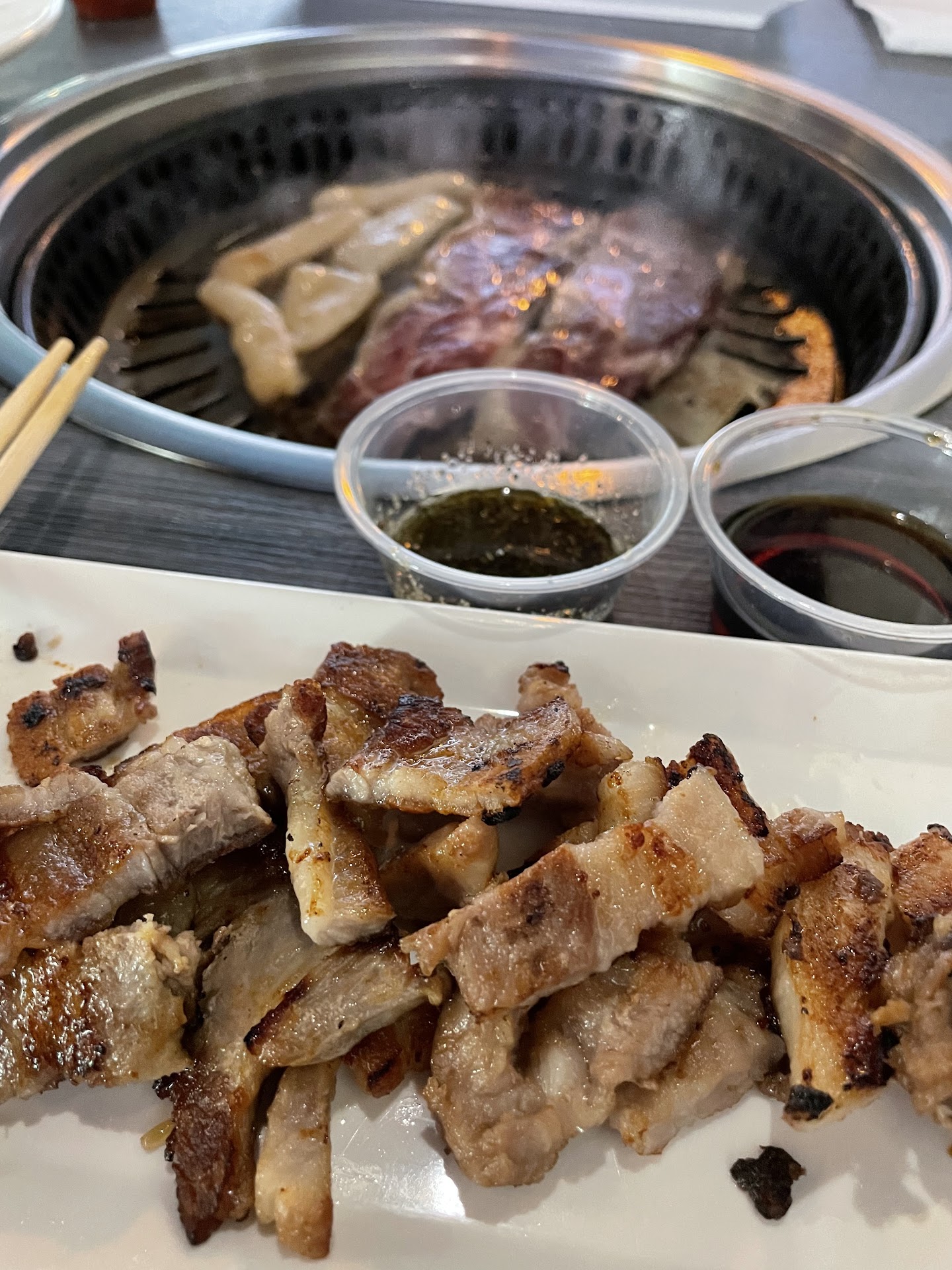 Read moreThis place really put me in the tough spot to write this review. My husband and I came from LA county and we might be used to with real Korean bbq in Korea town,That’s why this place quite a disappointed. First of all the ban chan or side dishes,That was the first things suppose to be on the table with varieties of yummy veggies,pickles,salad,kimchi etc. doesn’t matter you’ll eat all of them or not because that’s How Original Korean people do when they eat Korean bbq but with this place you’ll have to order those side dishes with your server,They’ll not bring it unless you ask for,Which I have never experience this in any Korean bbq place I’ve been to.I understand they might try to save cost by not wasting those left over side dishes but it’s just not How Korean bbq place suppose to be. Meat quality was not great but wasn’t bad either,I would give them a OK quality.The most disappointed item I would have to give it to “Thin Slice Beef Brisket” Though.Normally when you put this kind of brisket on the grilled it would almost melted and when you eat the texture should be soft and melted into your mouth but the brisket here was tough and chewy,Which this was my first time I had a slice brisket that was this hard. Another things I have to talk about was the tofu stew soup.They serve in a small bowl with a plastics spoon just like what you get from a cheap buffet.I have never seen any Korean bbq place does that! It will usually serve in a hot stone bowl,So it will remain hot for a while but the soup taste wasn’t bad,It’s was another a OK again. The best things on this visit was staffs,They are all so great! Make sure we got what we want,Grilled had changed as much as we want,Every time someone walked by they’re always make sure we’re doing ok,Love it! So the stars was basically for the service. Overall in my personal opinion,This place wasn’t a great or awesome Korean bbq but it’s wasn’t bad either,It was OK. Will we come back for a second time when we’re in the area? We’ll have to think...