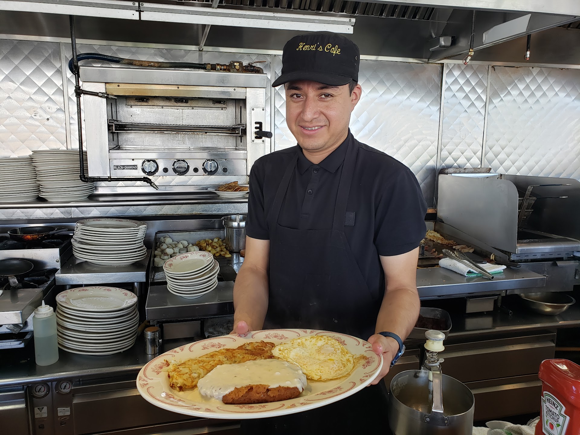 First we order a fresh fruit waffle and received a regular waffle. It was sent back to add fruit. We kept been rushed. Mid waffle and with one of us halfway through a sandwich and not even a dip to the fries the waiter showed up and ask if we needed boxes. Mind you we were still eating and the waiter brought the check and instructed to pay at the front. We were not finished and not ready to leave just yet. I took out the my card to get ready and the waiter rush to ask if she should take it to the front to pay. I found it wierd as they had told us we needed to pay at the front cashier and told her I would go pay in a little bit. We were waiting for one of us to come back from the restroom when the waiter made it's final appearance and ask if we were done we should leave because they needed the table we were there for less then an hour and we were just waiting for the last of us to come back from the restroom. We told her ok we would leave shortly. When we were paying we saw that several customers that where there were still there drinking coffee ☕️ and chatting. I really can't understand why we where targeted by this waiter 🤷♀️ and I don't think I have to tell how unpleasant this brunch was thanks to the waiter. Food was bla not bad in flavor but...