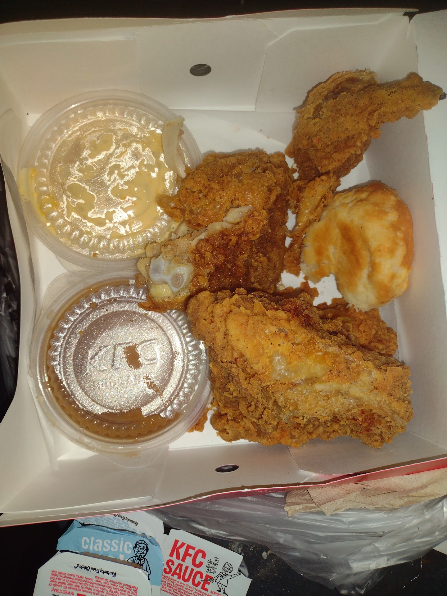 ย ย ย Read more๐Yummy, "KFC -๐ Chicken Restaurant!!" Excellent staff service & the "KFC's Fried ๐ Chicken" at this particular location in Oxnard, CA. And it's, NEVER a bit greasy! Like it always seem to be, at all of the other places, we've ordered "KFC๐" from! This is really, the main reason, that our family only enjoys eating at this particular "KFC-๐" Restaurant," in Oxnard, CA. When our family gets "KFC ๐," we always seem to order the same thing, the family meal. Which includes, (1) KFC Family ๐ Bucket & for a little extra "$" you are able to Special Order, all dark meat! We always request, only the ๐-legs & thighs, when we make our "KFC ๐" order. The family meal also includes (2) sides of mash potatoes, (2) brown gravies, (1) Lrg. container of yellow corn & (6) Lrg. freshly made biscuits! Whether you prefer, to dine-in or to do take-out, w/your "KFC ๐" Meal!? I'd really recommend this one particular "KFC๐Restaurant" in Oxnard, CA; if you find yourself in this area of California?! To anyone, who wants to eat some of the most delicious "KFC๐" that you've ever had! When ever you're in the mood for...