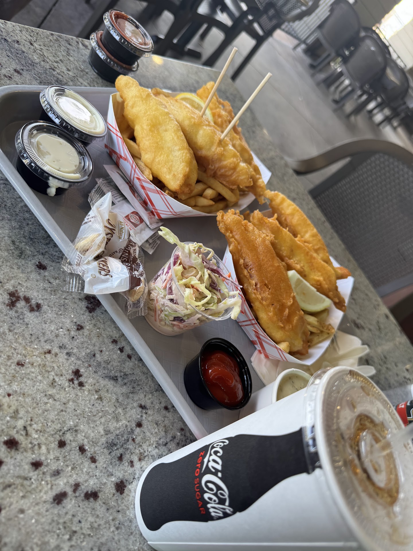 We love this place and go every time we head to my BF's beach house. Specifically, we adore the clam chowder and the oysters Rockefeller. They're a 'must order'. A little tip, add in some of their Manhattan fish soup into the clam chowder (makes it sort of a creamy Manhattan clam chowder), it's delicious in a different way đ. If you like spicy try the hot & spicy shrimp or the buffalo chicken wings for an appetizer. Truffle fries are always an easy pickin's app. For an entree, the clams have a nice creamy garlic broth. The limoncello mussels are actually in a creamy garlic broth w just a hint of lemon and thyme (beware of this if you're thinking it'll be a real lemony garlic wine broth). Everything comes w awesome toasted garlic bread for dipping in the broth. Any of the blackened fish tacos are a good choice but I think our favorite were the ahi- they claim to be spicy but it's the spice of wasabi, nothing too crazy for any of you sensitive types. If you take a leisurely Duffy boat ride and want to make a stop, there is a dock right near the restaurant to hop off and grab a cocktail but beware that it is a locked dock so without a key you'll need someone to stay behind to reopen it for you. Dogs are welcome here (there are 2 patios) but make sure your dog is friendly please and show common courtesy đ Lastly, it's a casual walk up and order type of restaurant with first come first serve seating. If you sit at the bar though, you can order through the bartender. This is also the only place you can order cocktails (as supposed to the food order line where you can only order canned beers and wines as far as I know). Check this place out, it's worth it for fresh seafood in a nice, clean, and casual...