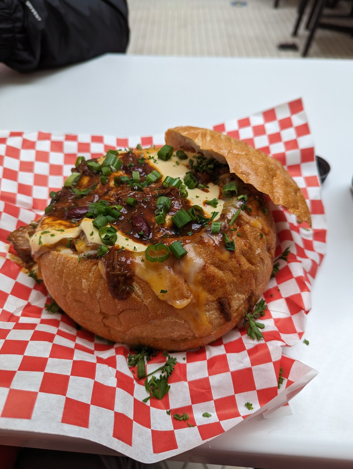 Read moreWe got the tri tip sandwich, hot links, and garlic bread. We tried to order al pastor fries, but the person at the register was clearly out of it.