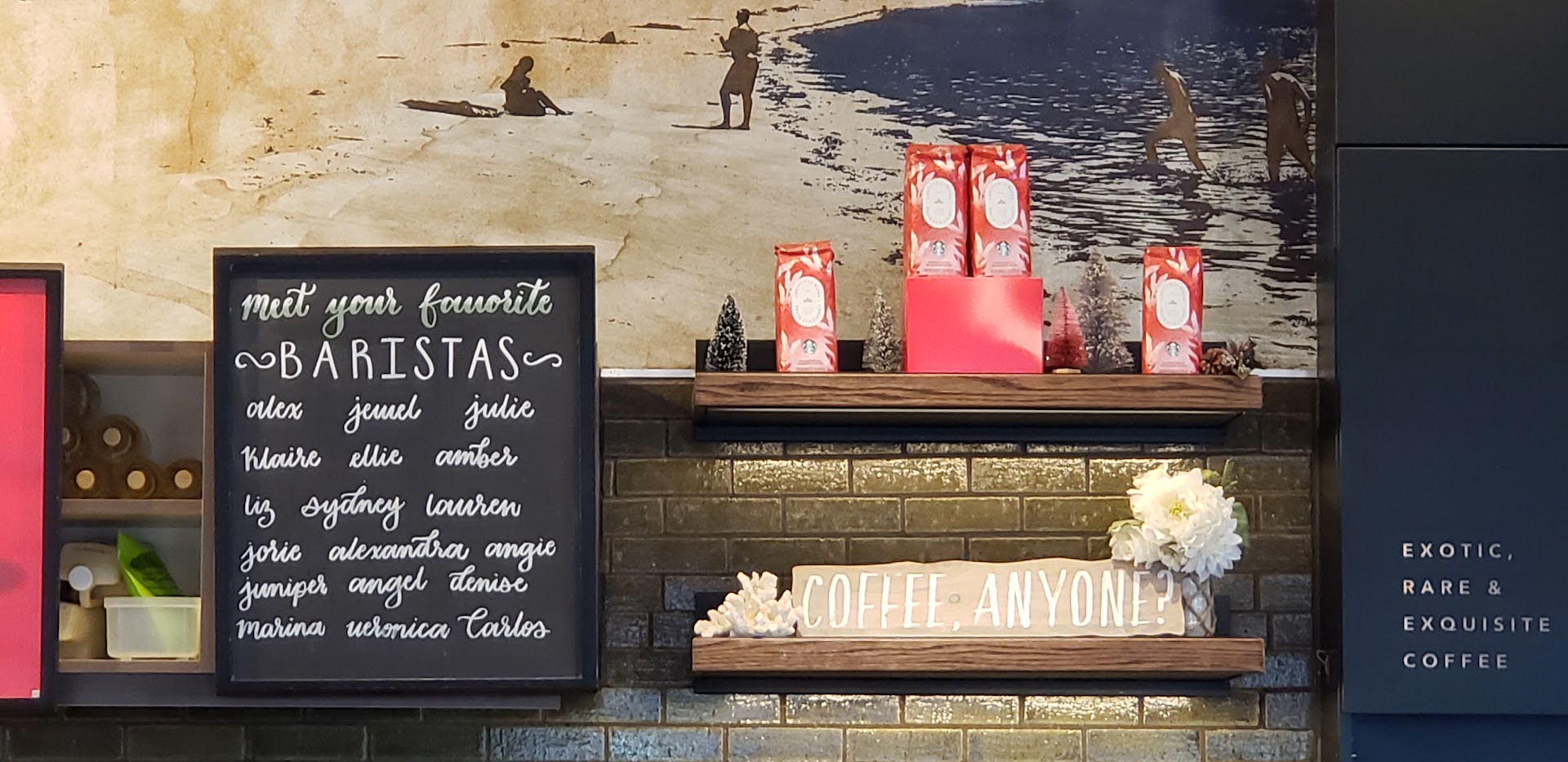 This Starbucks is also one of the few remaining Starbucks that still sells Starbucks reserve coffee, which not all sell. If u haven't had any, treat yourself to some, it's their top shelf coffee. Overall always a great experience, to the point where I DNT go to any other Starbucks if I DNT have to.
