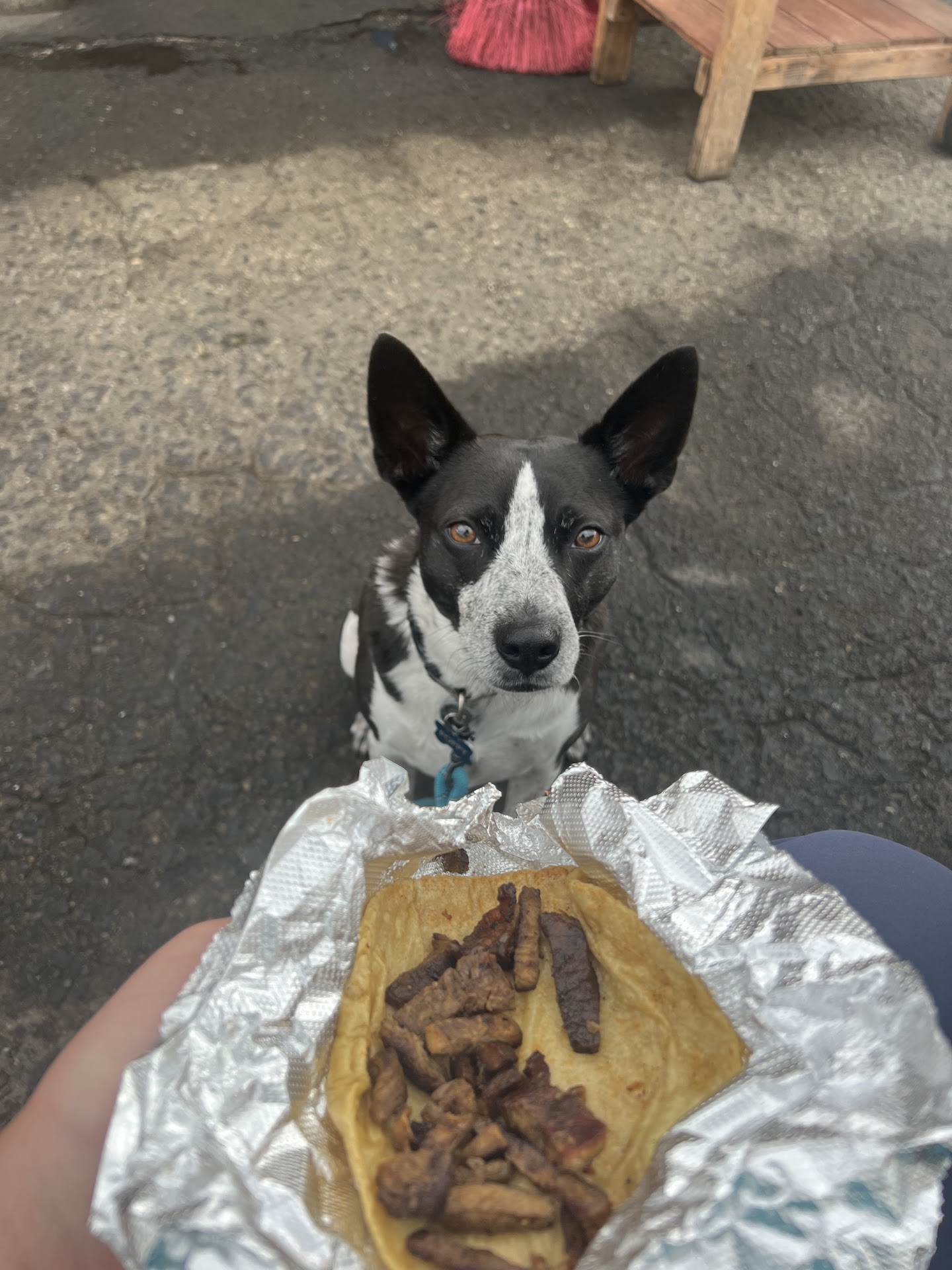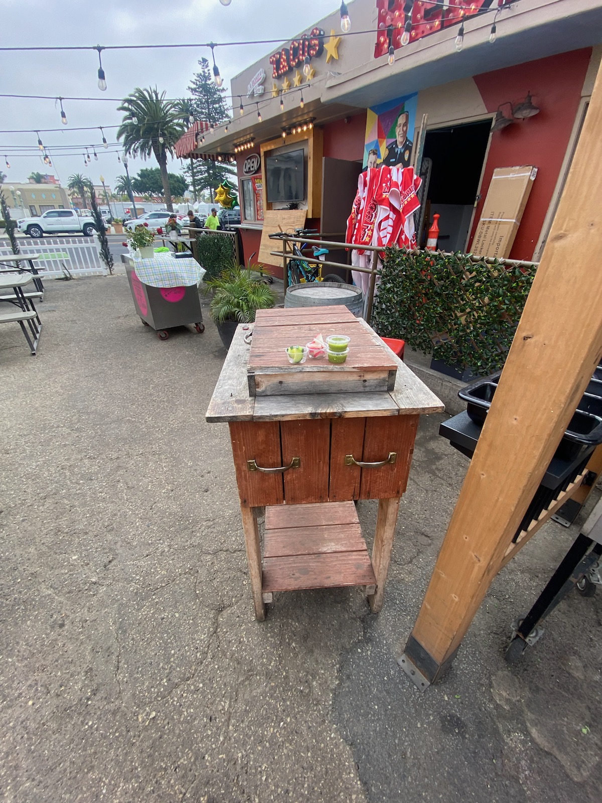 I parked in the back and could not locate where to order. At the time there were NO customers. There is a stand with flowers and a spike with ticket orders, but no one was there so I thought, maybe that's for dine in? Then there are windows around the building, so I walk up the ramp and the windows are closed except for one. Then and employee comes out and I ask, "donde ordeno?" and she says "alli afuera"...Super confused cause I am outside already. Finally, I figured out that you order by the sidewalk in front of C St, there is another stand with chips on top.