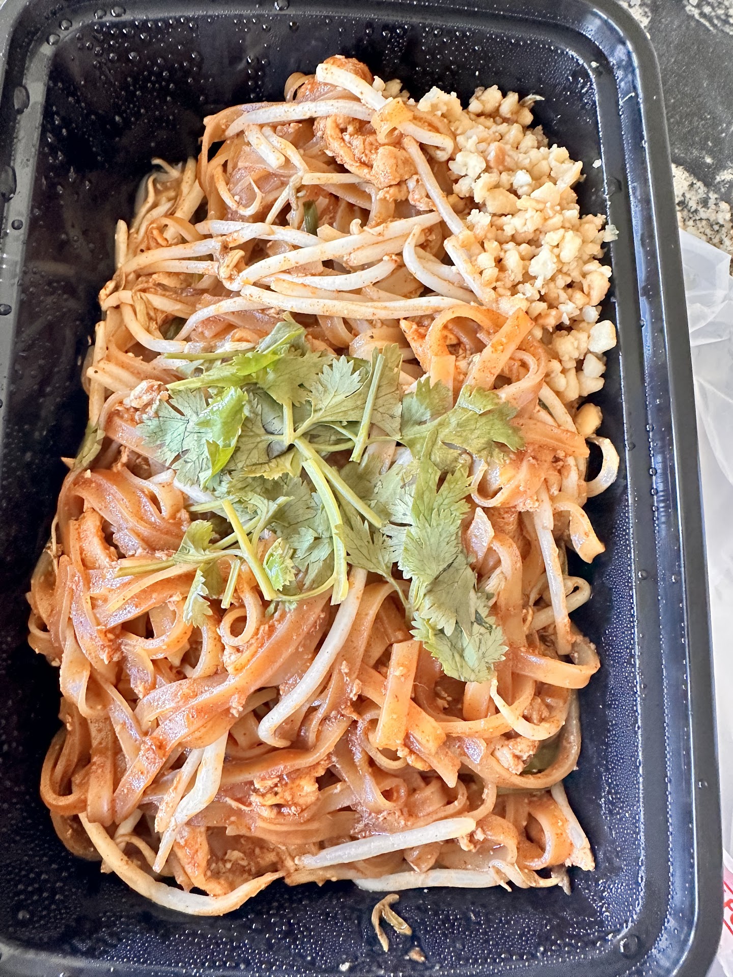 I ordered the chicken pad Thai and there was no chicken! I think I counted like 4 small pieces in the entire entree! It was also just odd, no veggies really, the bean sprouts were really soggy and overcooked and not a single piece of green onion, not nearly enough peanuts either. And the dumplings were good, but soggy. They were missing any sort of texture. But they werenāt bad, especially with the dipping sauce. And finally, the tangerine chicken. Wow was it sweet, too sweet! The sauce was literally stick to the bones thick and gooey. Very unappetizing! The chicken had decent crunch, but the sauce was just too much.
