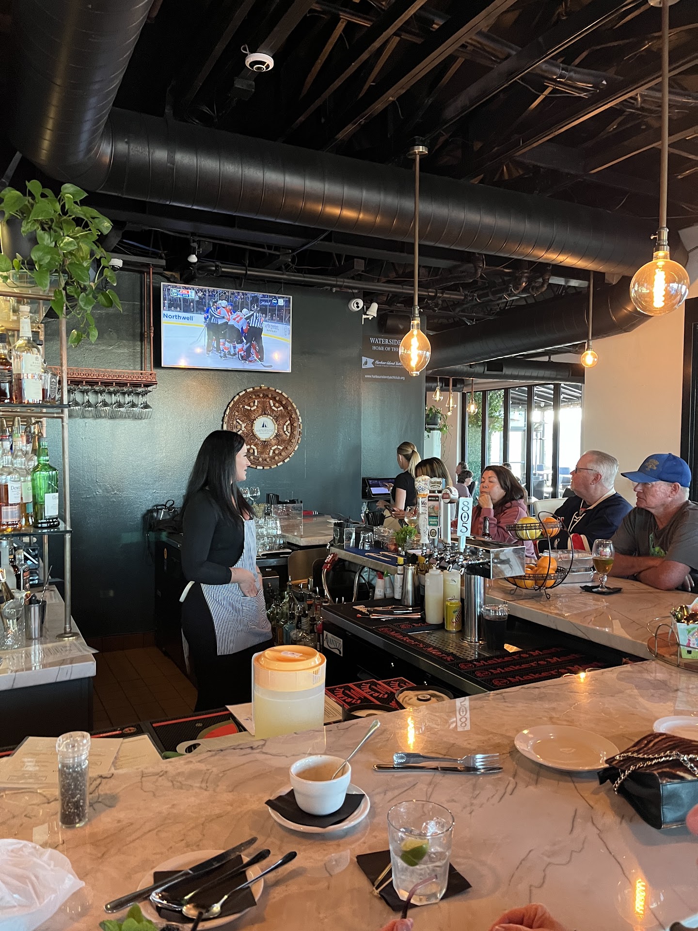 We had a rehearsal dinner at Waterside for my best friend’s wedding on May 16, and I was blown away by how great everything was. The manager and staff were amazing, and handled our large party with such professionalism. The manager personally helped me many times, grabbing an extra table/table cloth to set up the event decor, showing me the best places for photos in the private room, and even finding me a place to charge my phone.