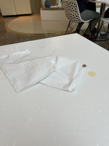Oh and the dirty tables. All of them. We tried to at least cover up the mess someone else left. This is at the MGM, so it really makes no sense. Iâm sitting here seeing multiple people cleaning stuff all over the lobby area near the cafe. But this place is a mess...
