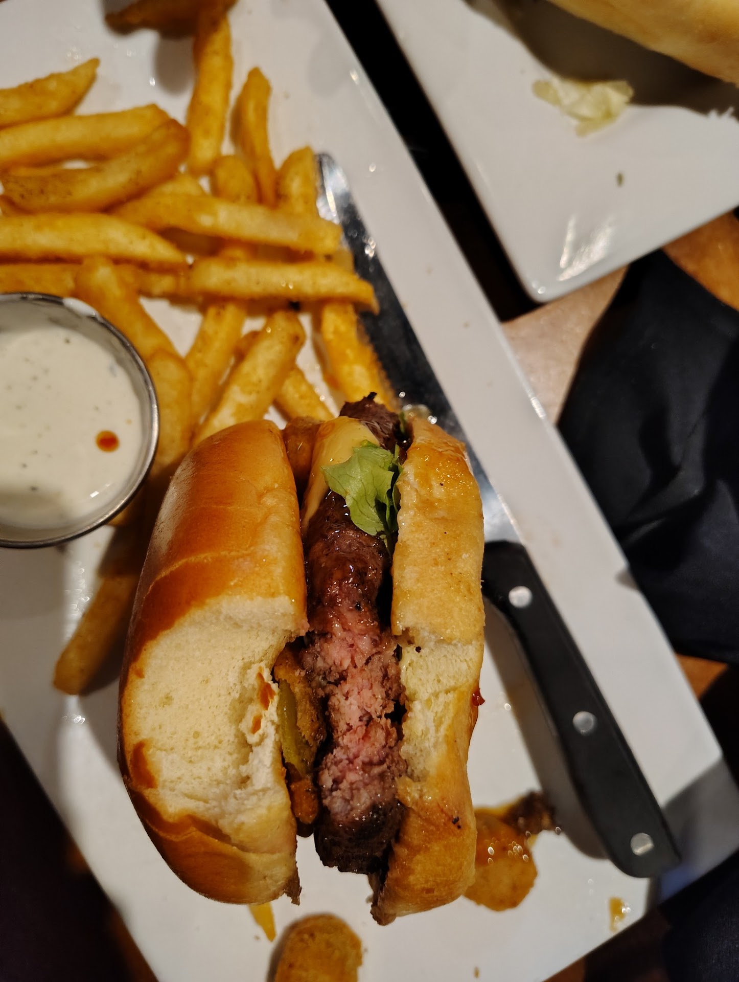 There was a generous portion of chicken tenders and fries on her plate. I believe that the chicken tenders AND the fries were the best I have ever eaten. Seriously. I have probably eaten 50 pounds of chicken tenders and 100 pounds of batter dipped fries in my lifetime. These were both blue ribbon quality! Top shelf food. Everyone else in our group ordered different hamburger and batter dipped fry combinations. Everyone said that their food was cery good.