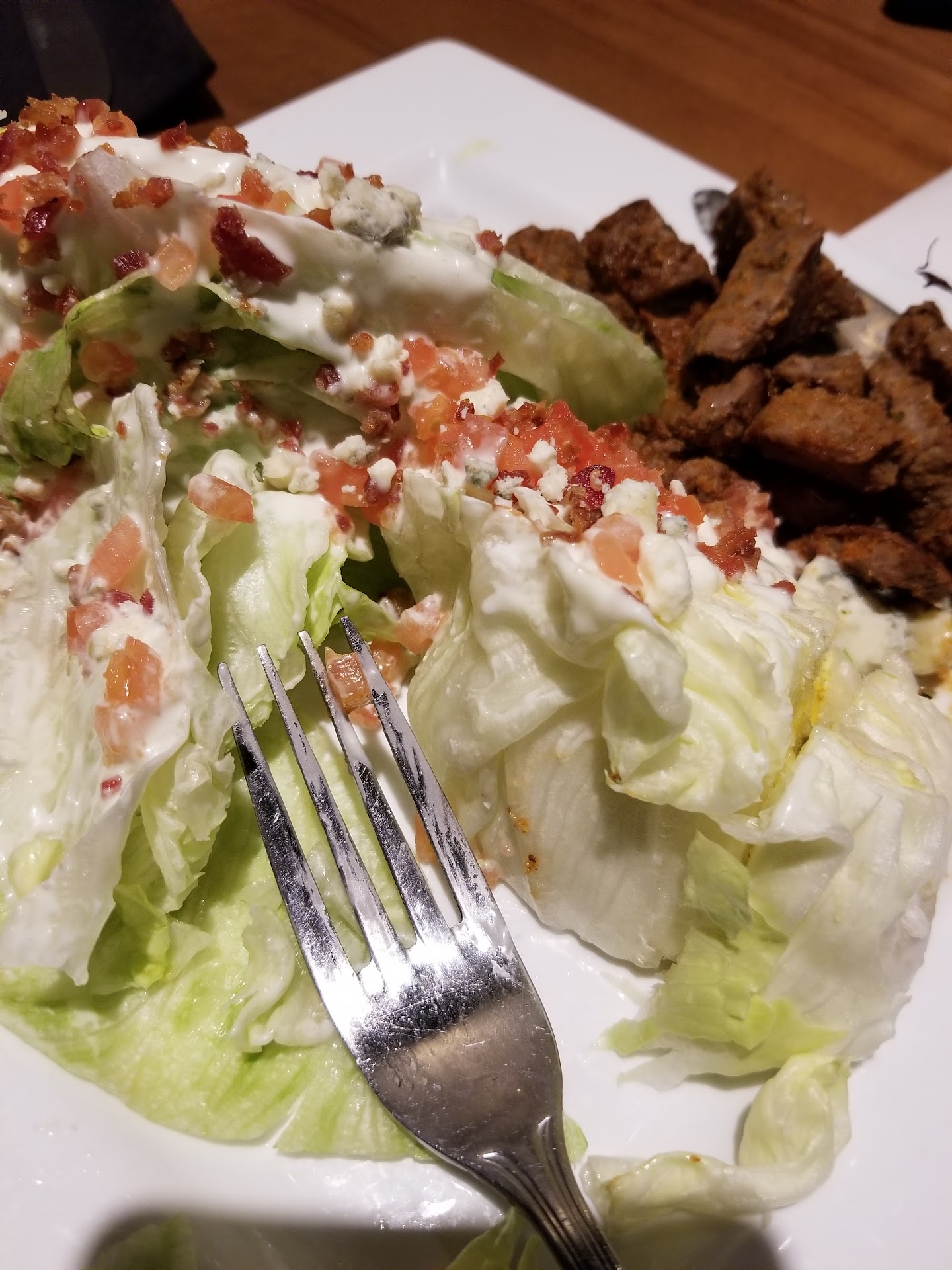 The food was VERY good! My pork steaks were VERY overcooked, but the Burbon sauce covering them was SO great that it did not matter to me. Hahaha