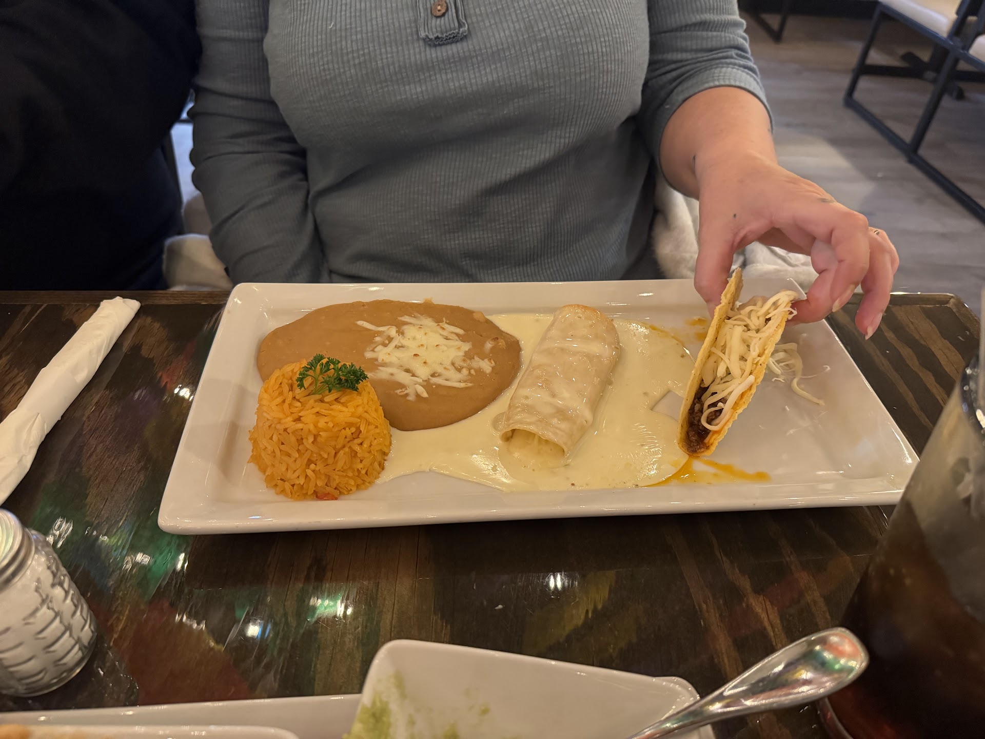 Read moreWow! Such flavorful food! Went here for the first time yesterday with my mom and daughter. I wasn't that hungry, but Mom had heard it was good. The chips were fresh, crisp, and warm; not too thin or too thick. They serve fresh, mild salsa in a small carafe with individual dipping dishes. I'm not a big salsa eater, but couldn't stop with this! They probably have spicier offerings, but this suited our tastes. My daughter and I shared a lunch special. The rice was the best Spanish rice I've ever eaten. It was cooked to perfection! Tender, but not mushy. The moist grains were not sticky at all. First time I've knowingly had Perauno beans - where have these creamy, almost buttery beans been all my life?!? The ground meat in our enchilada was delicious - not dry, seasoned beautifully. Mom had the chicken chimichanga lunch special. She loved the way the chicken was shredded - shorter pieces than the typical offerings and easier for her to eat. The shell was crisp. The drawbacks for her were that the pico de gallo was in bigger chunks than she's had in the past, and the sour cream was swirled on the salad and pico, rather than in a scoop on the side. We ordered a small helping of guacamole, which was generous, fresh, and scrumptious. I wish I'd been hungrier! All this with prompt, attentive service made for a great experience. We'll be back! Highly...
