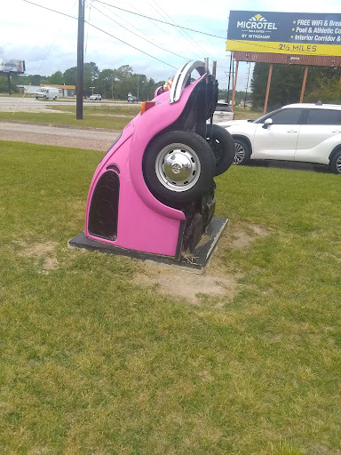 Very cool looking place, back half of a beetle bug in the front of the building and my favorite color... PINK!!! Woohoo!! Already winning me over a little at a time.