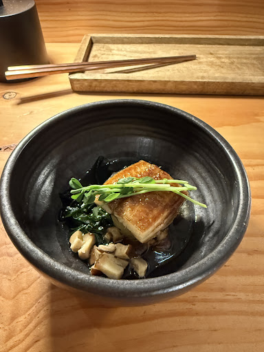 From the melt-in-your-mouth nigiri to the comforting, umami-rich cooked dishes, every course felt intentional and delicious. The vibe of the space is intimate and warm, with a clean, minimalist aesthetic accented by lush greenery and the soft glow of the wood-fired oven at the heart of the kitchen.