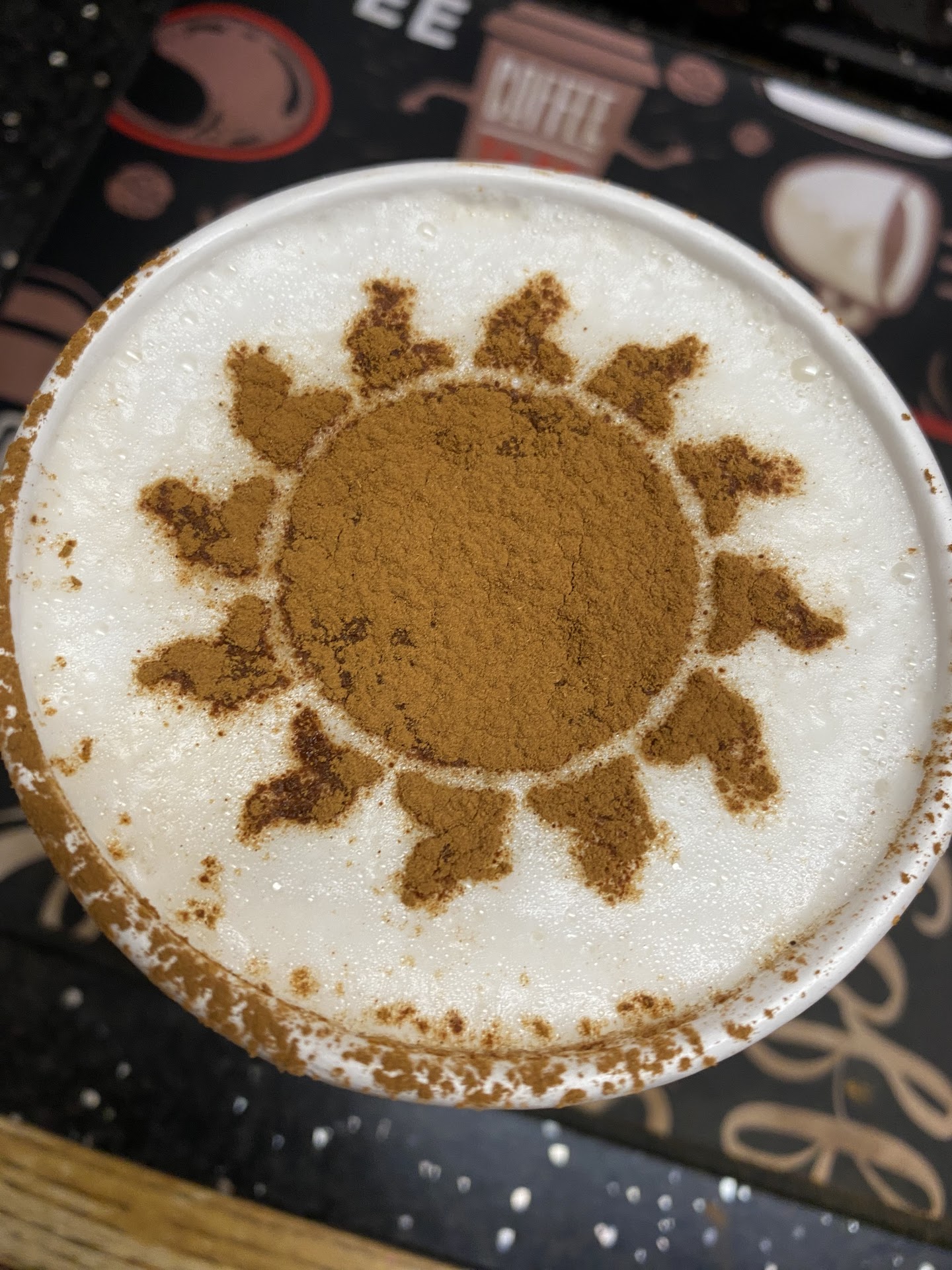 I got a hot chai latte with regular milk. I liked the beautiful sun-shaped pattern of cinnamon that was sprinkled on top of it. The overall taste was pretty good, but there was a flavor in it that tasted a bit off to me, as if it had an artificial sweetener in it. (I had read and was told at the counter, that they make their chai in-house, so I was expecting more of an authentic, pure chai flavor.) And it was way too hot! I waited about 5 minutes to try it, and it was still so hot, that I burned my tongue, and had to spit it out!