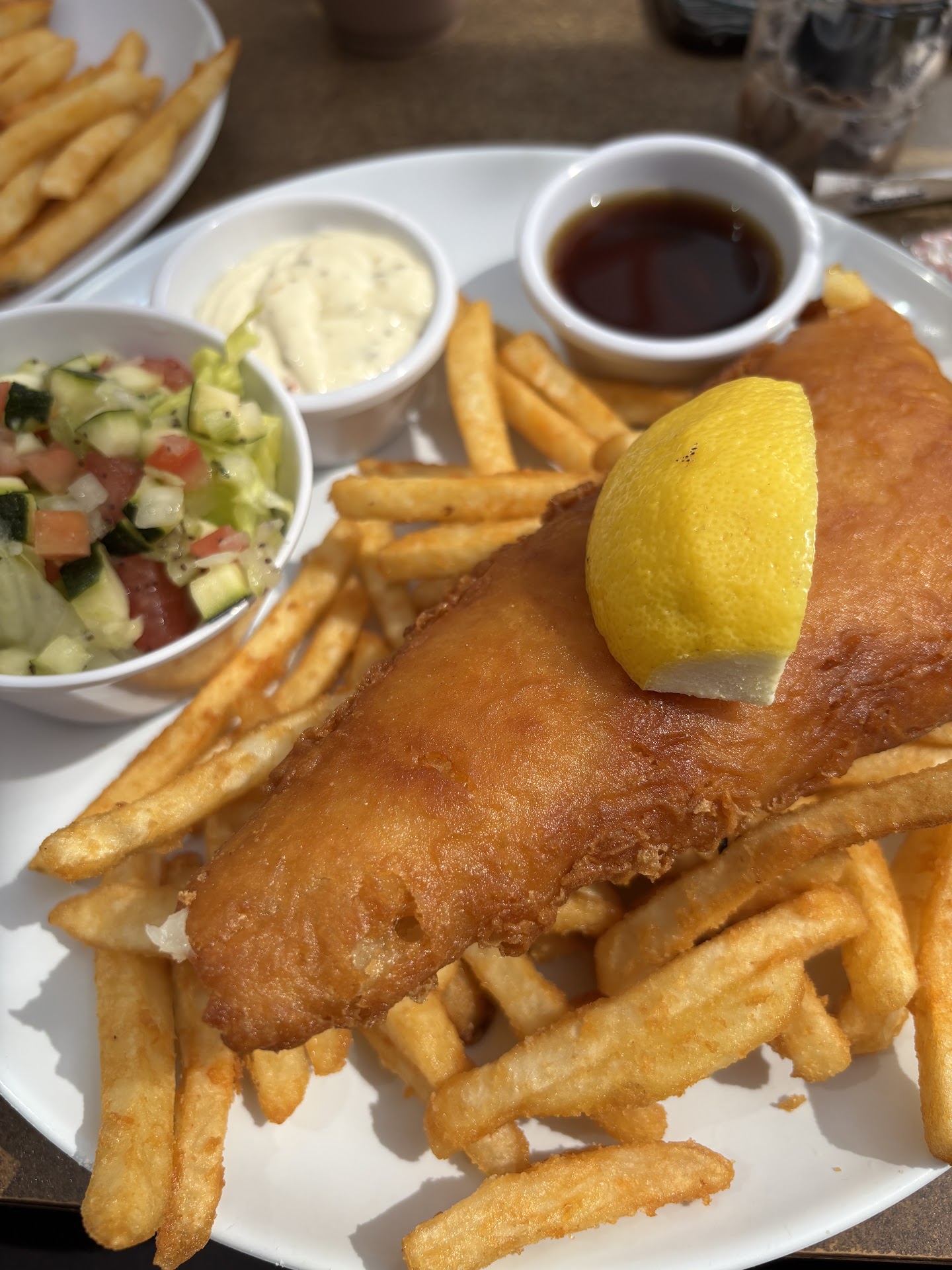 My husband, our 2 kiddos, my daughters best friend and I stayed in half moon bay to celebrate my daughters 13th birthday. We spent 2 days walking and playing on the beach. We lived on snacks, sandwiches and laughs! As we were headed home, we all needed a real meal. When we walked in I was skeptical because we order at the counter and the only spot was in direct sun. There was a man sitting in the booth nearby who I could tell immediately was either the manager or the owner. WELL, boss man had all the answers. He immediately asked someone to put up the shades for us so I was happy! The woman who took out order was super friendly and helped me decide lunch over breakfast. Good thing! It was actually the best fish and chips Iāve ever had. I shared bites with the kids because it was an ENORMOUS piece of fish. They were obsessed. Also amazing fries! The husband had biscuits and gravy and I swear I could have just drank it. So so good with the mushrooms!!! It was super funny that the boss sat next to us most of the time. He laughed about my daughterās comment on the chicken āstripsā. Thanks for making our...