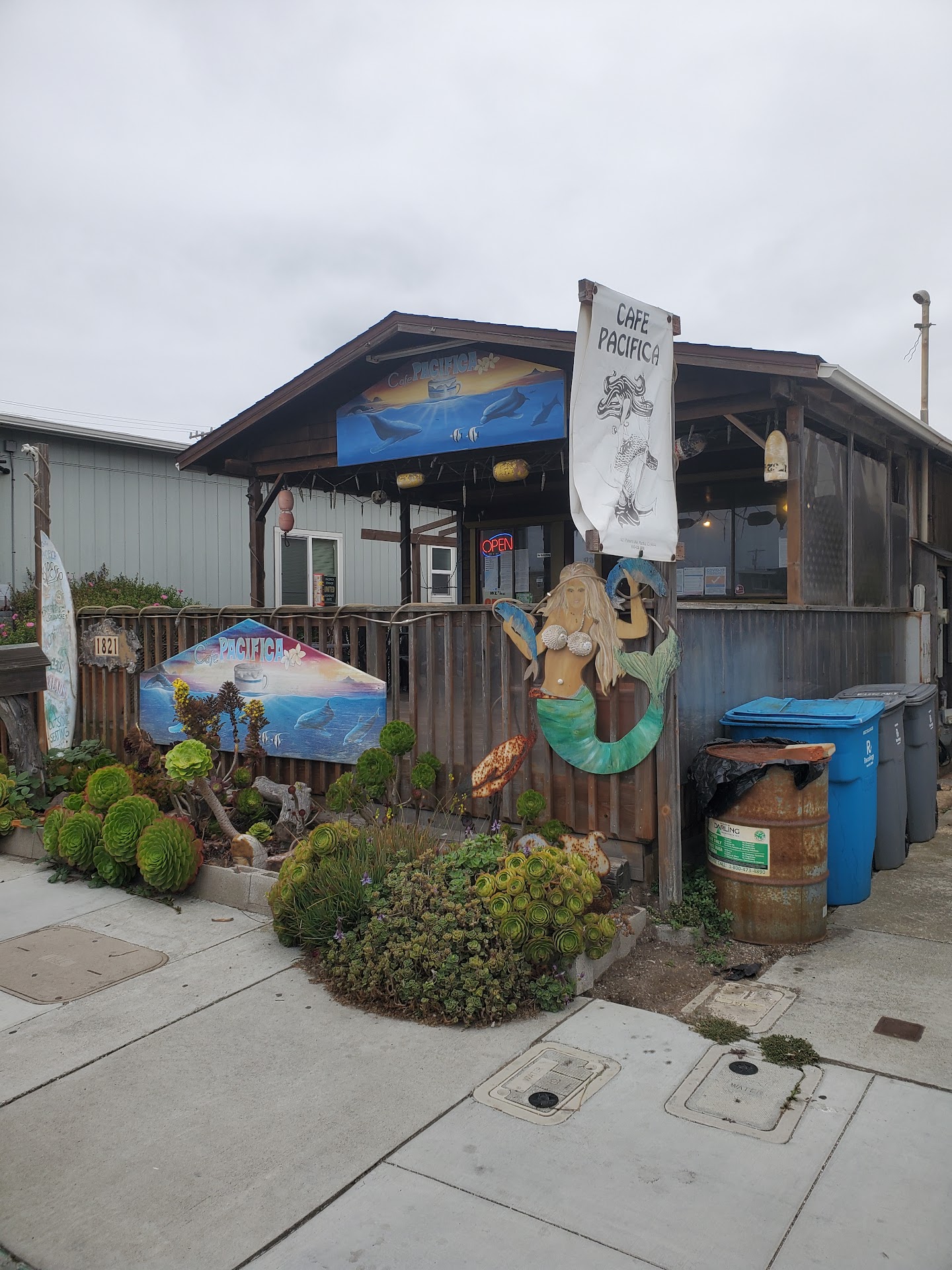 This little cafe in Pacifica really looks like it has been built to be on the beach instead of two blocks away from it. Maybe they have a longterm strategy and hope that the beach once reaches Palmetto Avenue ...