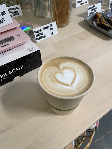 There is parking across the street. But if you have passengers, there isn't a sidewalk, it's just nature. Upon arrival, you are greeted with the most Insta worthy spot with vintage record player, pacman, and funky art. Latte was the BEST kind of lavender because it was not soapy tasting like other big brand coffee shops. Honey latte was also incredible. Originally I was going to take my poppyseed muffin to go, but I took one bite and devoured it with the pairing of my latte. They were training a new guy that day, and service was super fast. Customers waited with laptops, browsed the gift shop and set gallery (which featured QR codes for on the spot purchases), and another couple was playing pacman on the vintage machine for JUST A QUARTER. To my delight, I sat on a HEATED bench, making the entire...