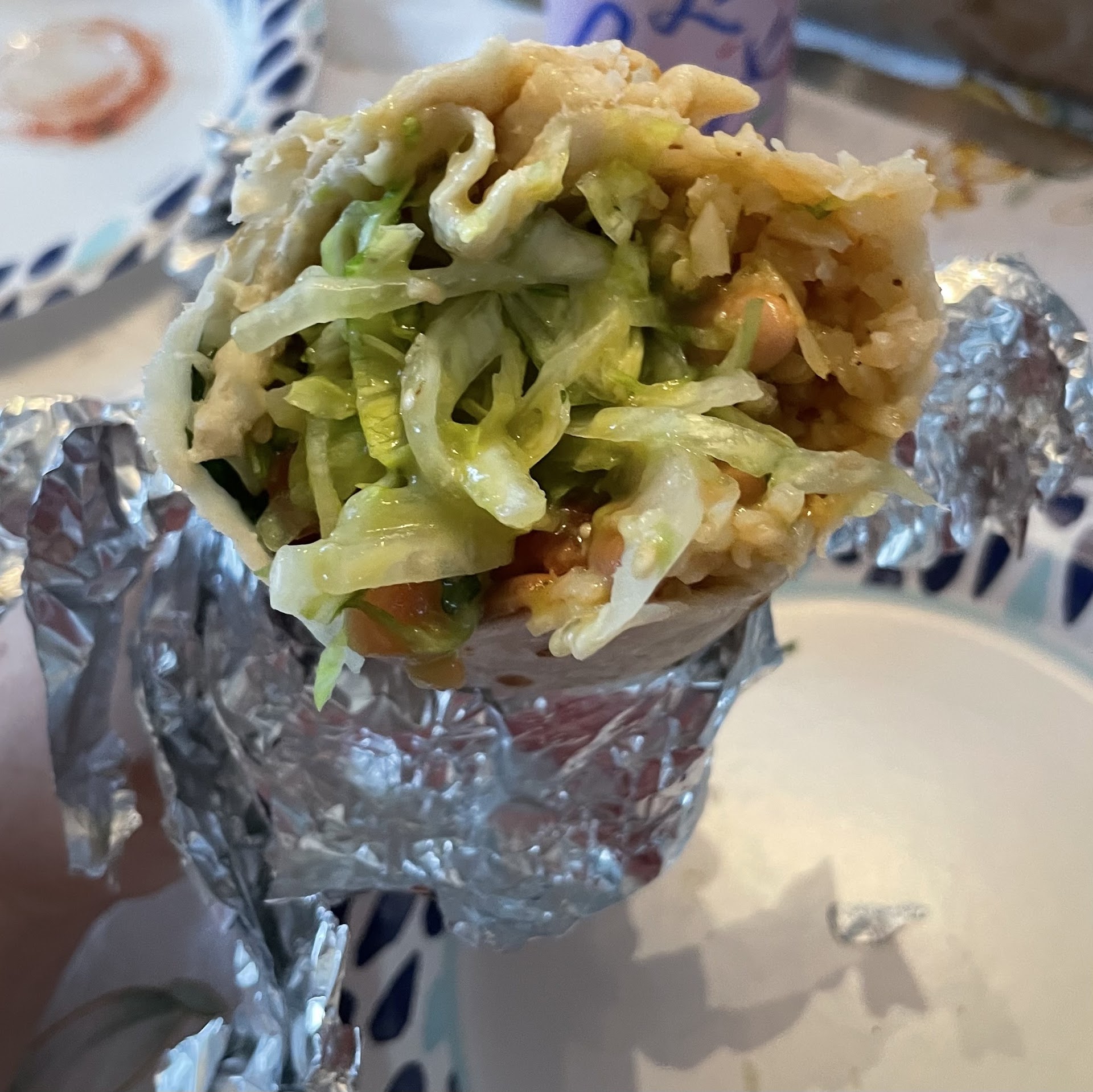 When we got home I was disappointed to learn my burrito was only- beans, rice & lettuce. We called up and shared we ordered a super chicken burrito (gave the order #) and they said to come back and they will have the correct burrito ready. While it was pain to drive back (luckily it’s close), I figured they would of course be extra careful to get the order right- especially as it is an easy order.
